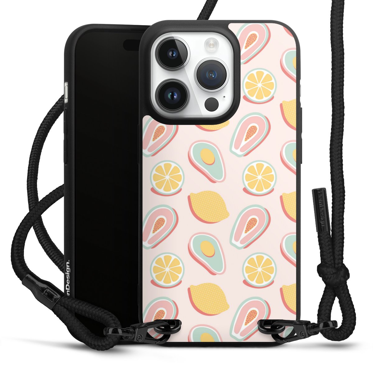 We use the solid direct print process for this phone case, which is why the print area only covers the back and the edge remains unprinted. The case to wear around your neck can be ordered unprinted, fully printed, or partially printed. For your design, either choose one of our exclusive shop motifs or get creative and create your own design, for example with photos and overlays. Design your own personal trend accessory and make an individual statement on the streets!
