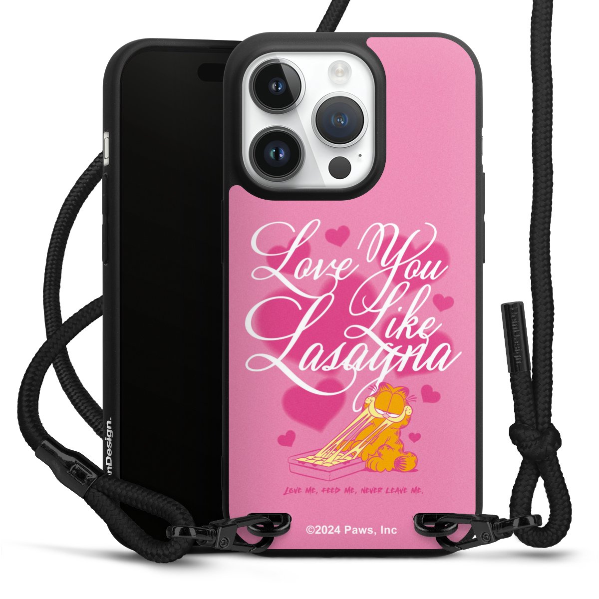 Pure Black: Phone case, fabric strap and metal details in stylish matt black.