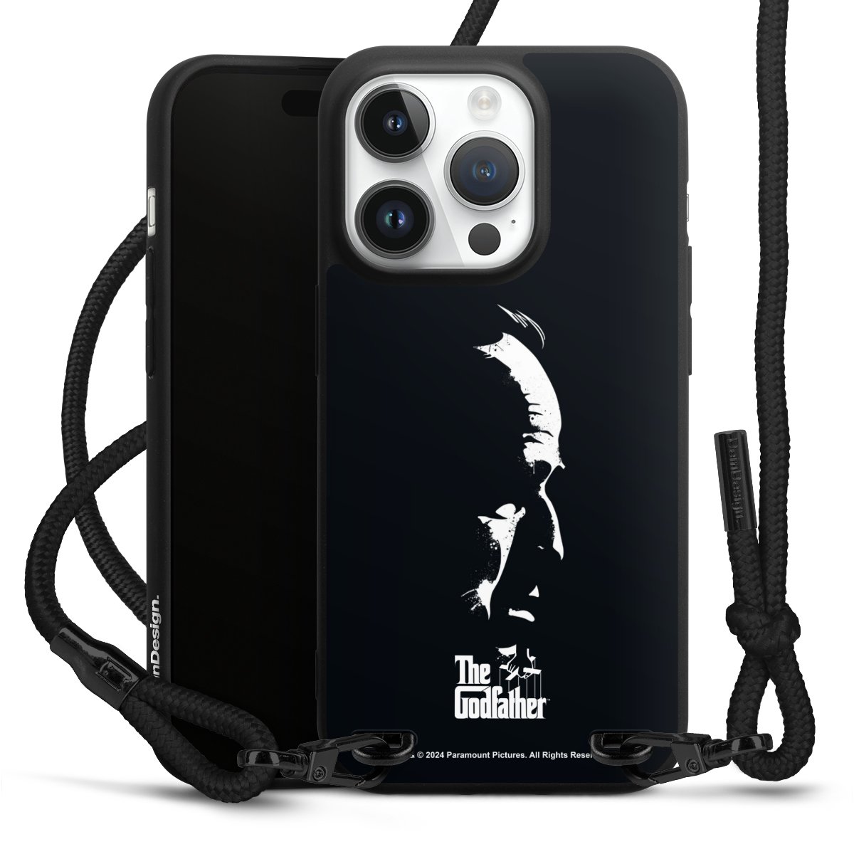 Pure Black: Phone case, fabric strap and metal details in stylish matt black.