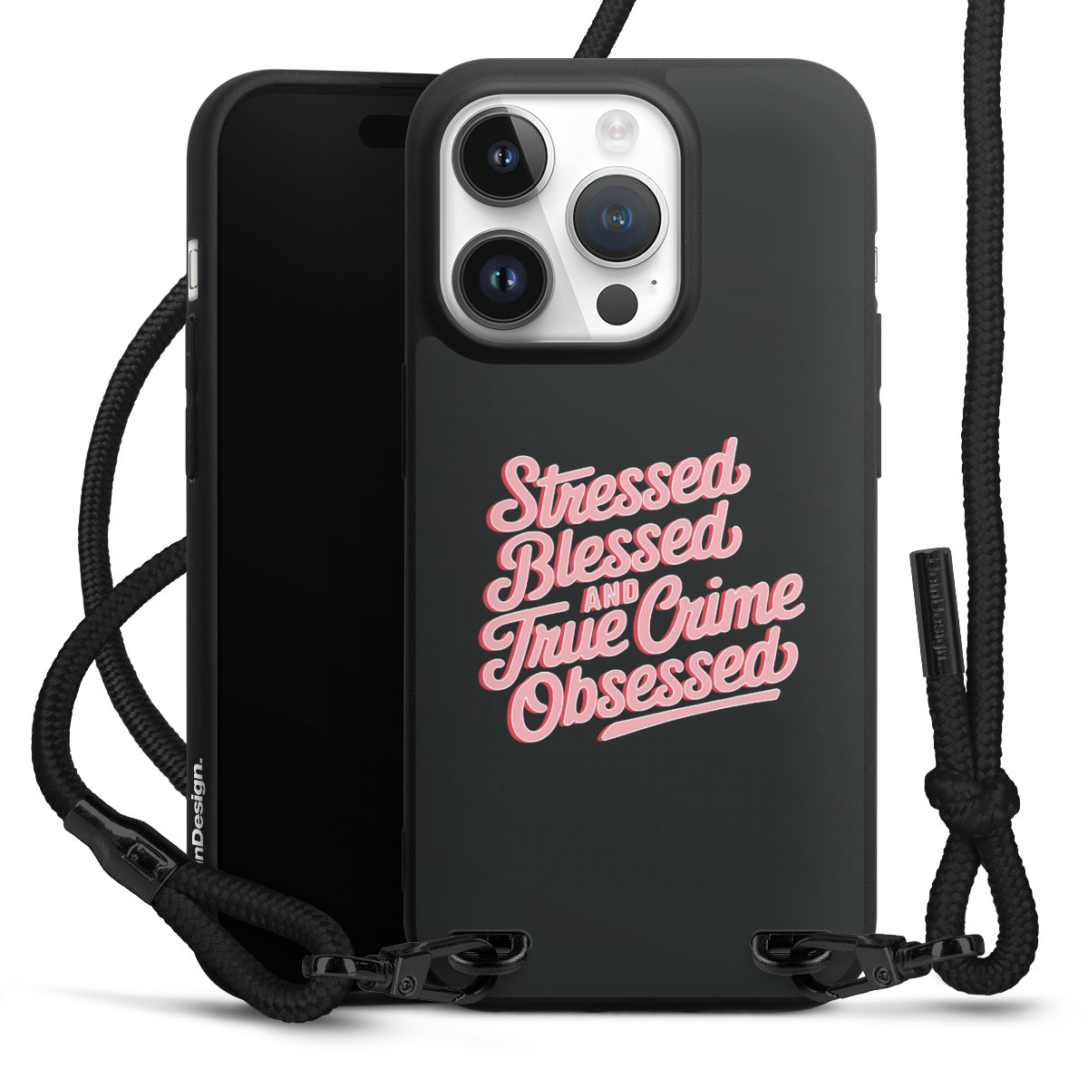 We use the solid direct print process for this phone case, which is why the print area only covers the back and the edge remains unprinted. The case to wear around your neck can be ordered unprinted, fully printed, or partially printed. For your design, either choose one of our exclusive shop motifs or get creative and create your own design, for example with photos and overlays. Design your own personal trend accessory and make an individual statement on the streets!
