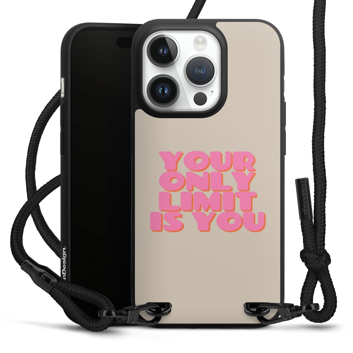 We use the solid direct print process for this phone case, which is why the print area only covers the back and the edge remains unprinted. The case to wear around your neck can be ordered unprinted, fully printed, or partially printed. For your design, either choose one of our exclusive shop motifs or get creative and create your own design, for example with photos and overlays. Design your own personal trend accessory and make an individual statement on the streets!