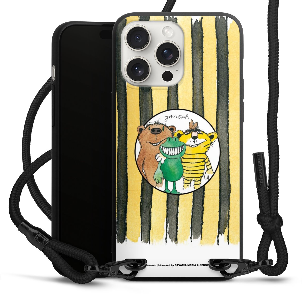 Pure Black: Phone case, fabric strap and metal details in stylish matt black.