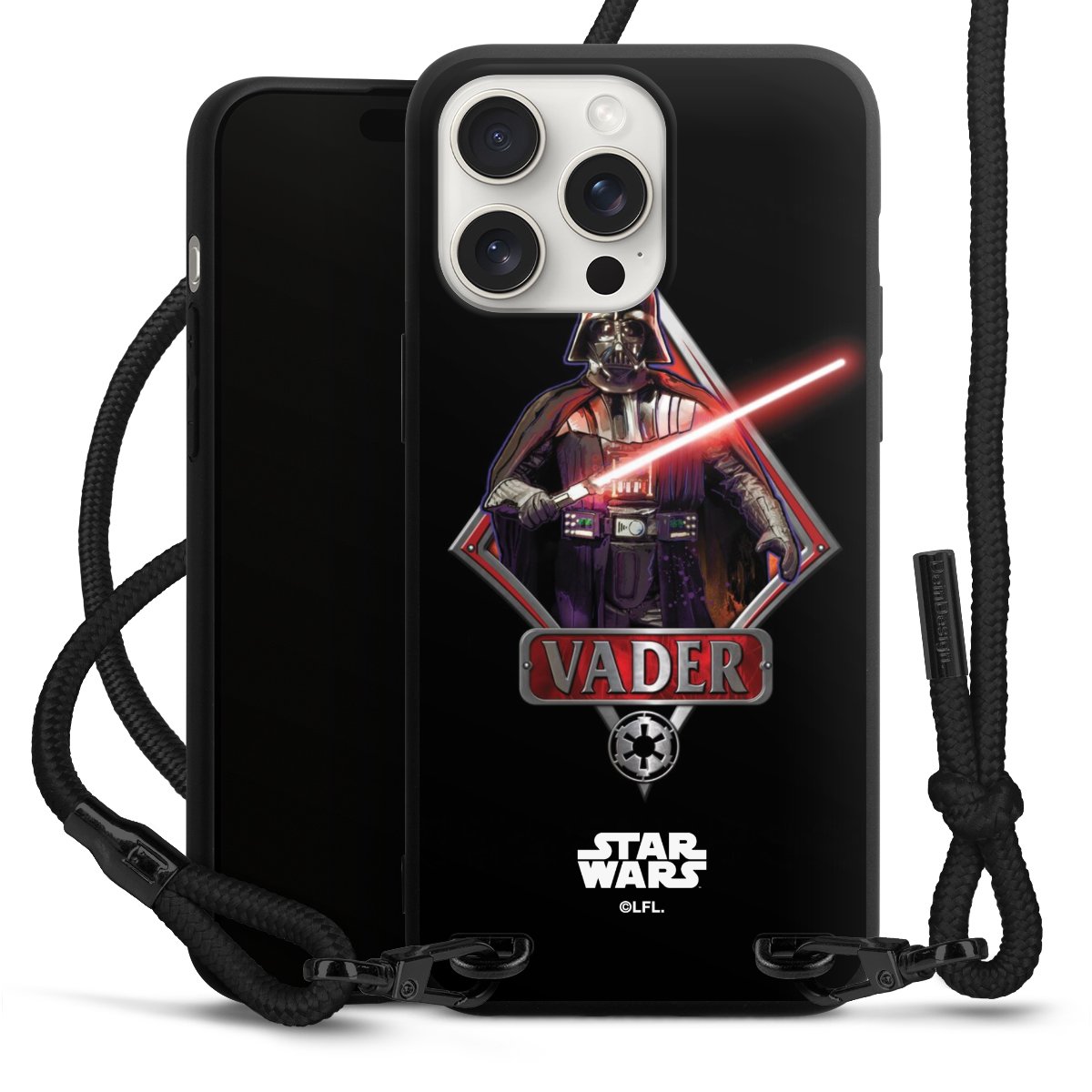 Pure Black: Phone case, fabric strap and metal details in stylish matt black.