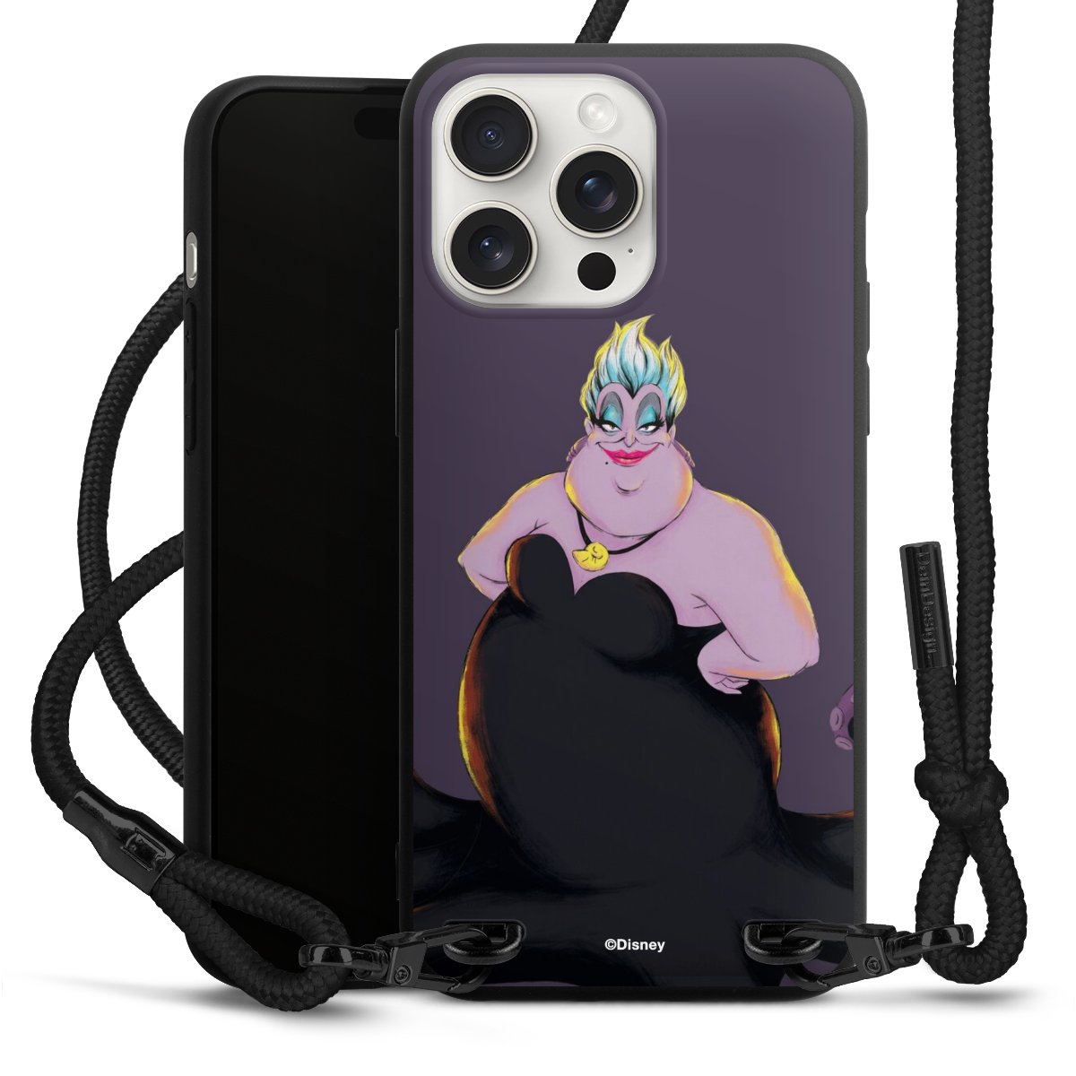 Pure Black: Phone case, fabric strap and metal details in stylish matt black.