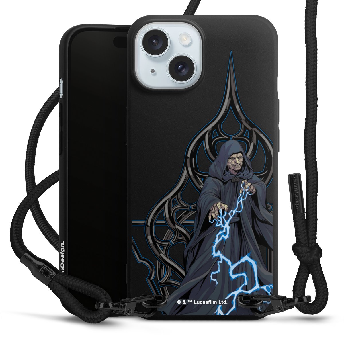 Pure Black: Phone case, fabric strap and metal details in stylish matt black.
