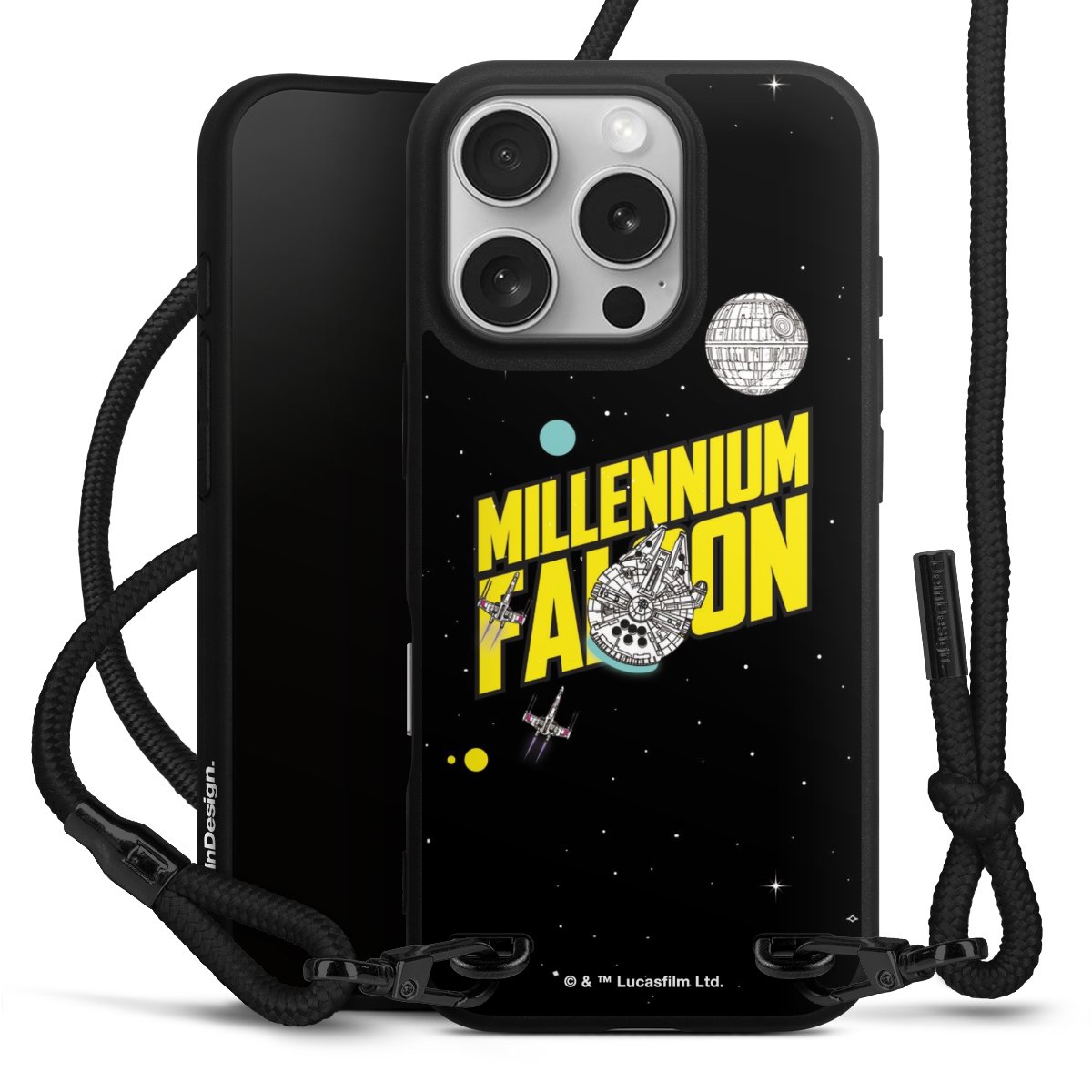 Pure Black: Phone case, fabric strap and metal details in stylish matt black.