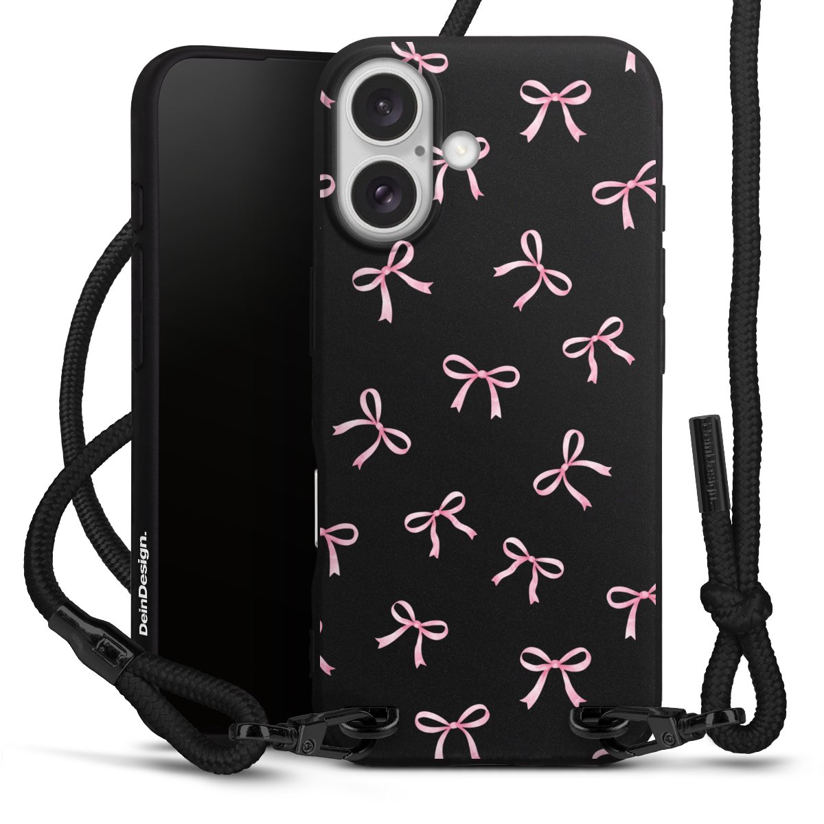 Pure Black: Phone case, fabric strap and metal details in stylish matt black.