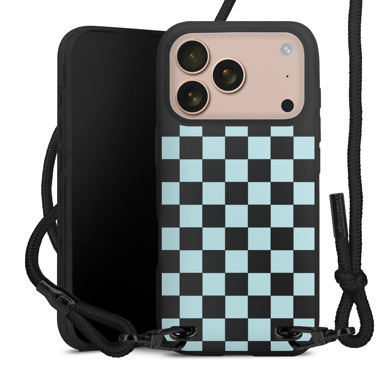 Pure Black: Phone case, fabric strap and metal details in stylish matt black.