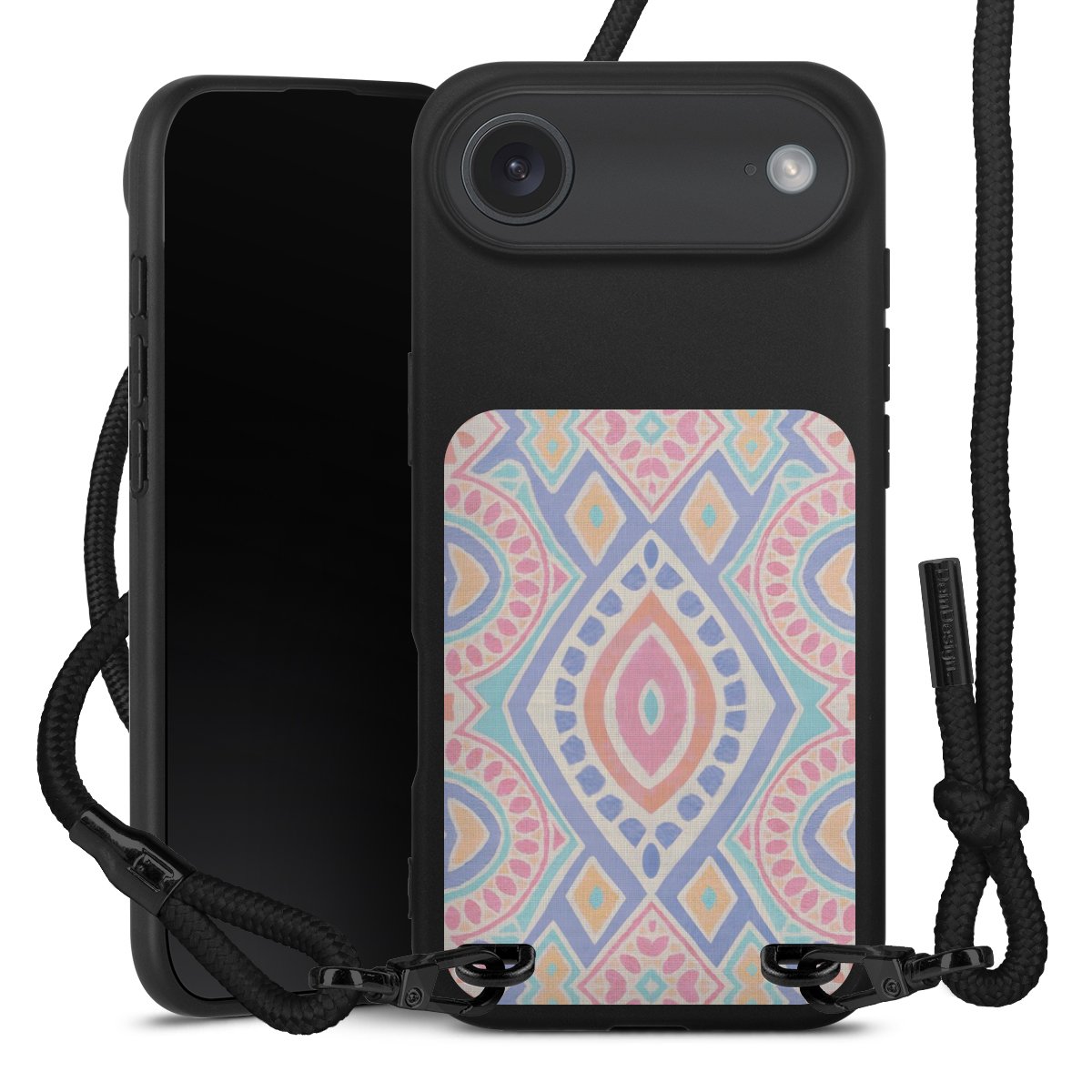 We use the solid direct print process for this phone case, which is why the print area only covers the back and the edge remains unprinted. The case to wear around your neck can be ordered unprinted, fully printed, or partially printed. For your design, either choose one of our exclusive shop motifs or get creative and create your own design, for example with photos and overlays. Design your own personal trend accessory and make an individual statement on the streets!