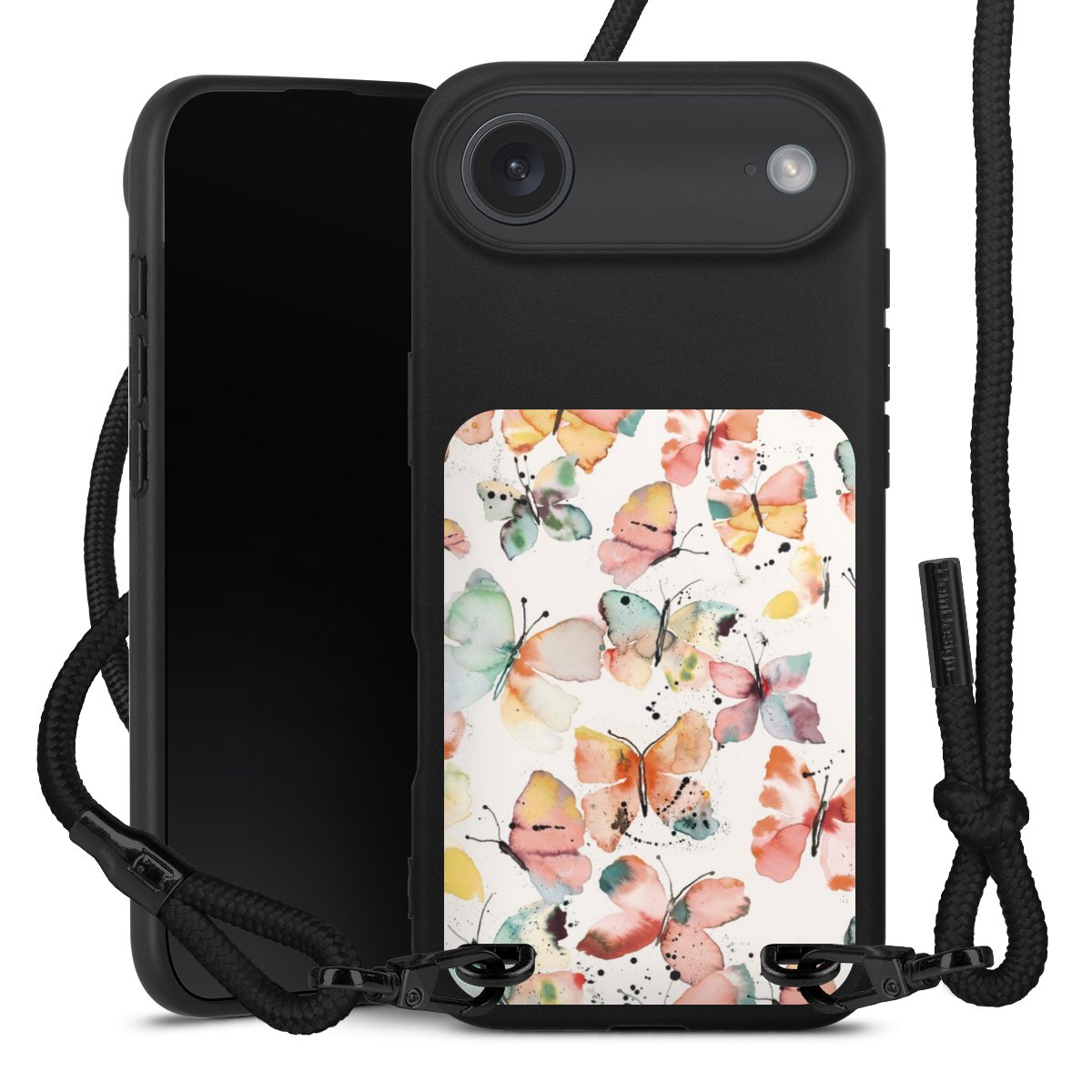 We use the solid direct print process for this phone case, which is why the print area only covers the back and the edge remains unprinted. The case to wear around your neck can be ordered unprinted, fully printed, or partially printed. For your design, either choose one of our exclusive shop motifs or get creative and create your own design, for example with photos and overlays. Design your own personal trend accessory and make an individual statement on the streets!