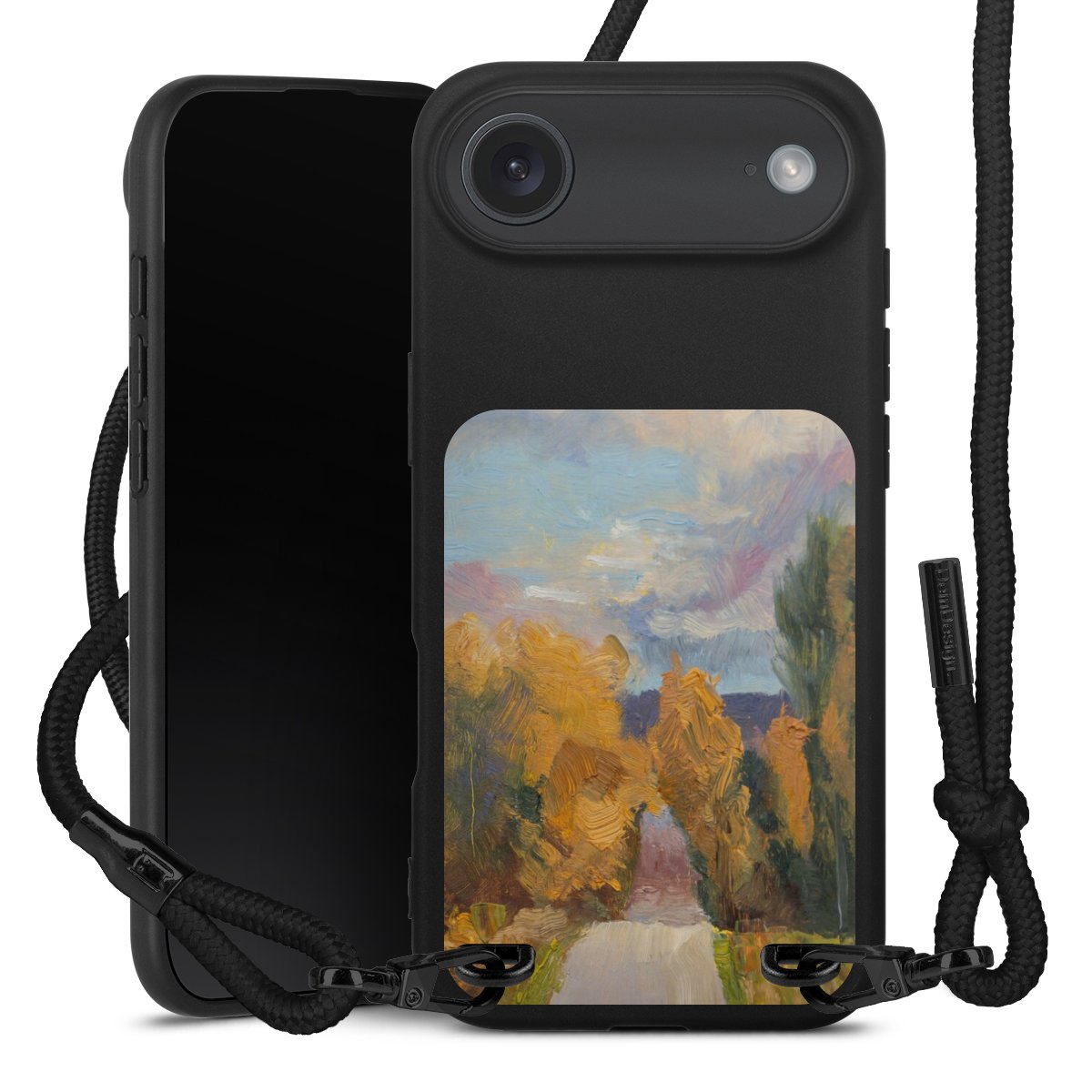We use the solid direct print process for this phone case, which is why the print area only covers the back and the edge remains unprinted. The case to wear around your neck can be ordered unprinted, fully printed, or partially printed. For your design, either choose one of our exclusive shop motifs or get creative and create your own design, for example with photos and overlays. Design your own personal trend accessory and make an individual statement on the streets!