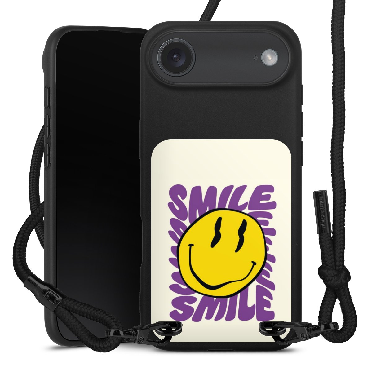 We use the solid direct print process for this phone case, which is why the print area only covers the back and the edge remains unprinted. The case to wear around your neck can be ordered unprinted, fully printed, or partially printed. For your design, either choose one of our exclusive shop motifs or get creative and create your own design, for example with photos and overlays. Design your own personal trend accessory and make an individual statement on the streets!
