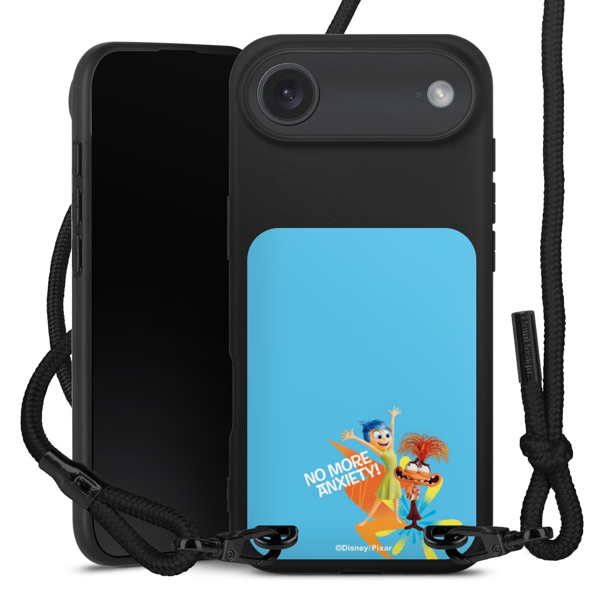 Pure Black: Phone case, fabric strap and metal details in stylish matt black.