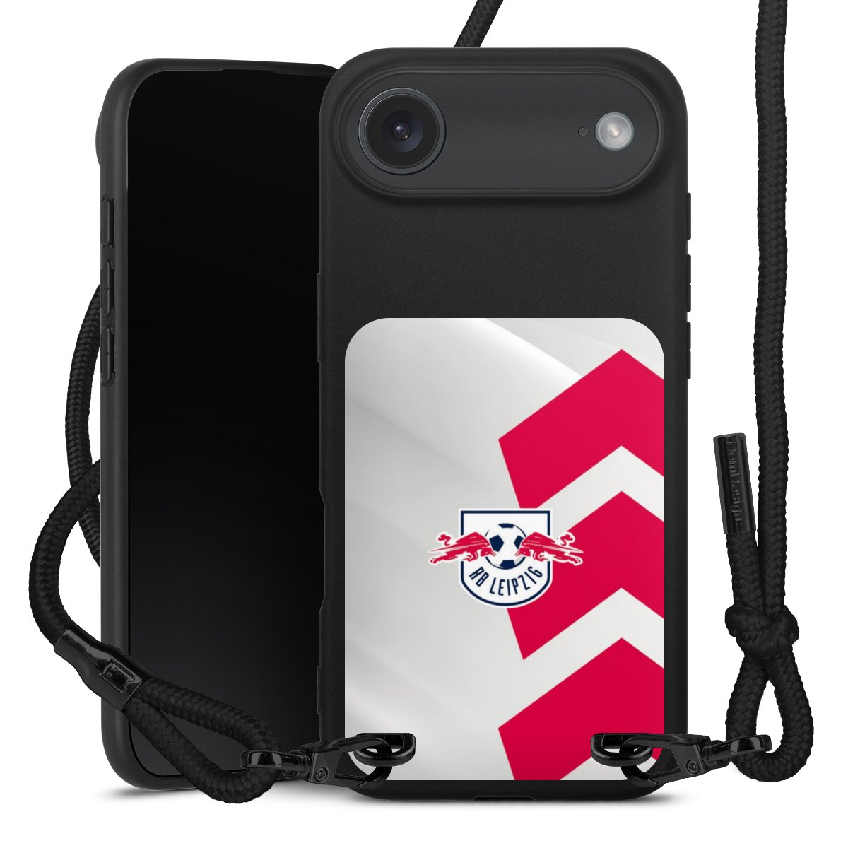Pure Black: Phone case, fabric strap and metal details in stylish matt black.