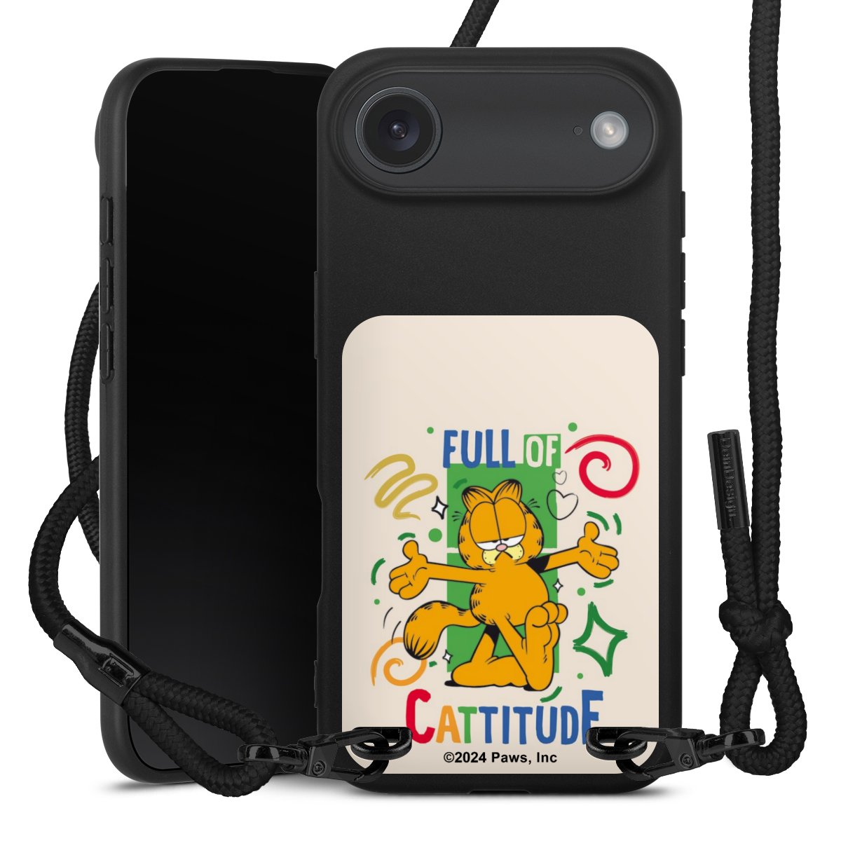 Pure Black: Phone case, fabric strap and metal details in stylish matt black.