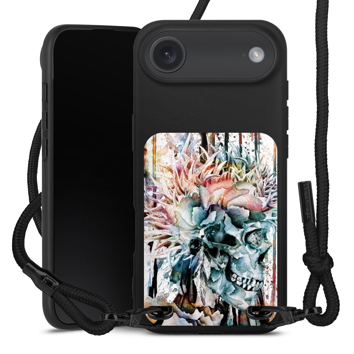 We use the solid direct print process for this phone case, which is why the print area only covers the back and the edge remains unprinted. The case to wear around your neck can be ordered unprinted, fully printed, or partially printed. For your design, either choose one of our exclusive shop motifs or get creative and create your own design, for example with photos and overlays. Design your own personal trend accessory and make an individual statement on the streets!