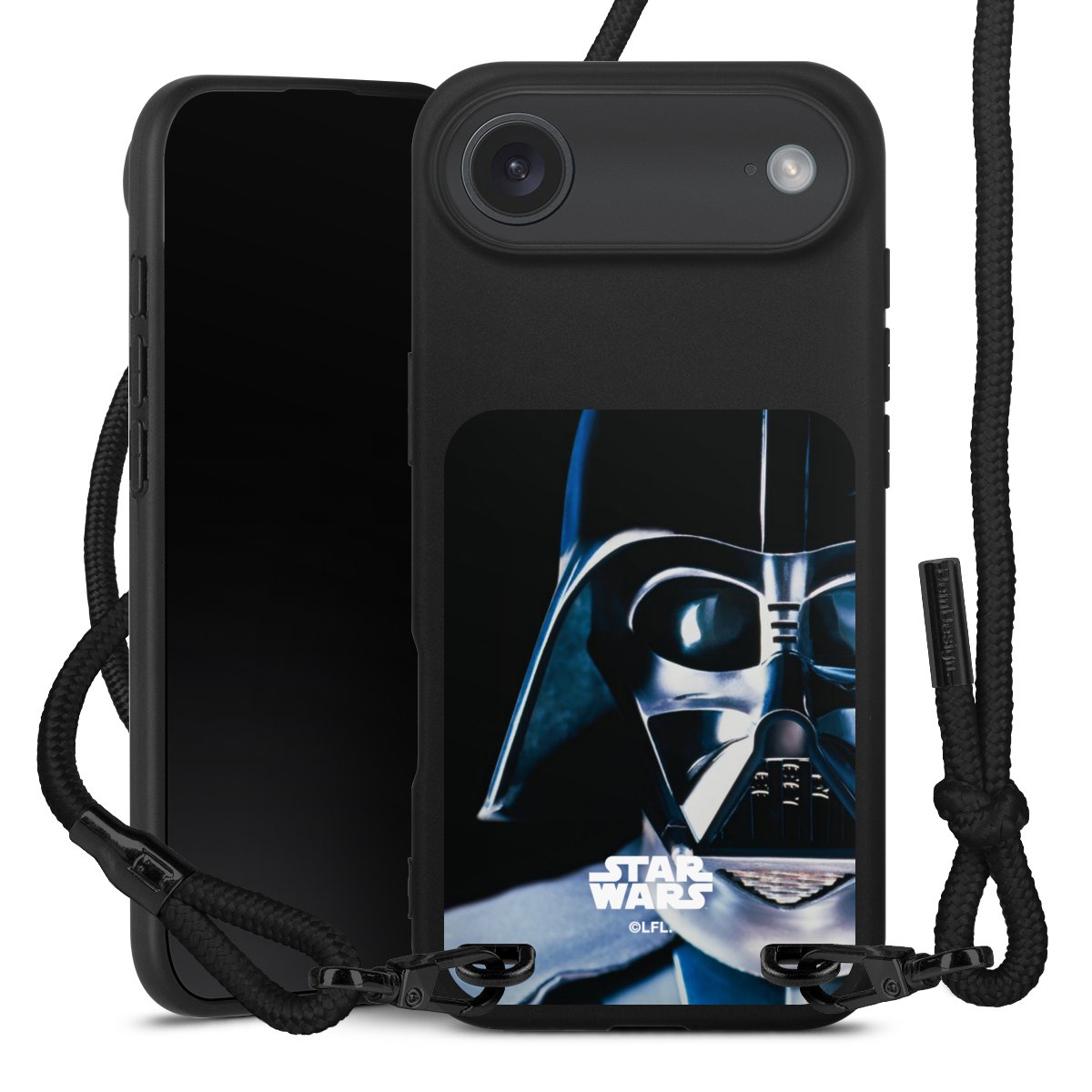 Pure Black: Phone case, fabric strap and metal details in stylish matt black.