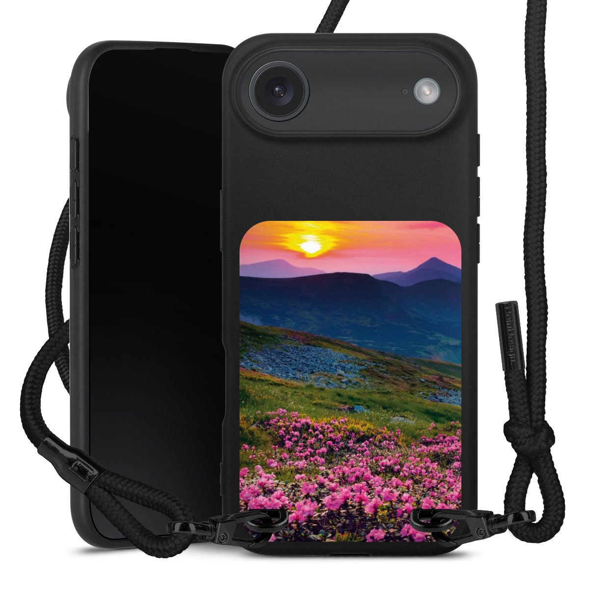 We use the solid direct print process for this phone case, which is why the print area only covers the back and the edge remains unprinted. The case to wear around your neck can be ordered unprinted, fully printed, or partially printed. For your design, either choose one of our exclusive shop motifs or get creative and create your own design, for example with photos and overlays. Design your own personal trend accessory and make an individual statement on the streets!