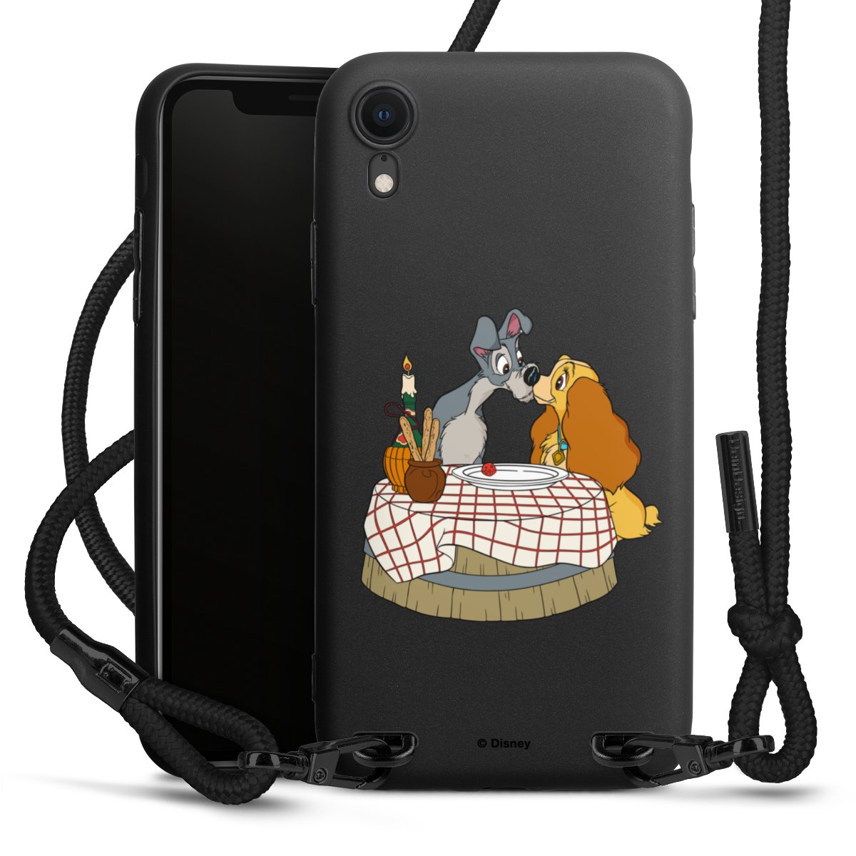 The matt black silicone case is made of flexible TPU (thermoplastic polyurethane) and offers robust protection. The durable, unbreakable material makes the cover flexible and dimensionally stable at the same time. The matte surface makes your design stand out more and is less susceptible to fingerprints and dirt. The stylish trend accessory fits comfortably in the hand and is perfectly complemented by the fabric (polyester) mobile phone strap. The braided fabric strap is approx. 1.70 metres long with a diameter of approx. 0.5 cm. Due to the special knotting technique, the length of the strap can be adjusted by simply pulling it, so that you can adapt it individually to your wishes. The practical case to wear around your neck is available with the fabric strap in black. As a little icing on the cake, we have provided the strap with a chic metal fastener in matt black. The strap is securely fastened to the case with loops made of high-quality genuine leather and press studs. The ends of the fabric strap are covered with metallic end caps and thus protected from fraying.