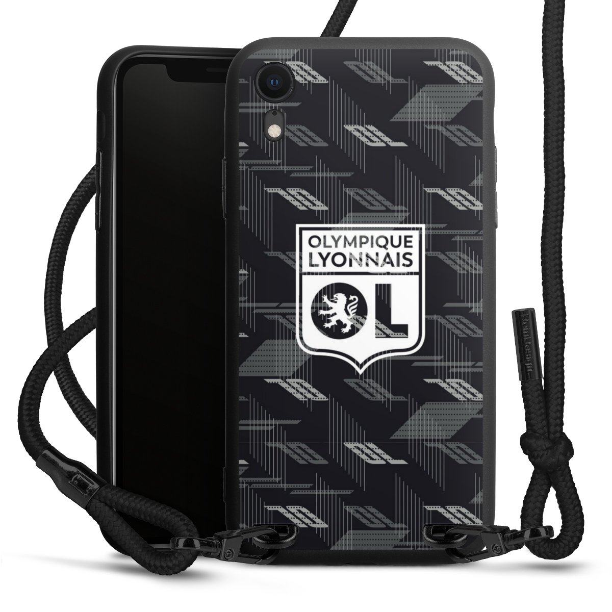 Pure Black: Phone case, fabric strap and metal details in stylish matt black.