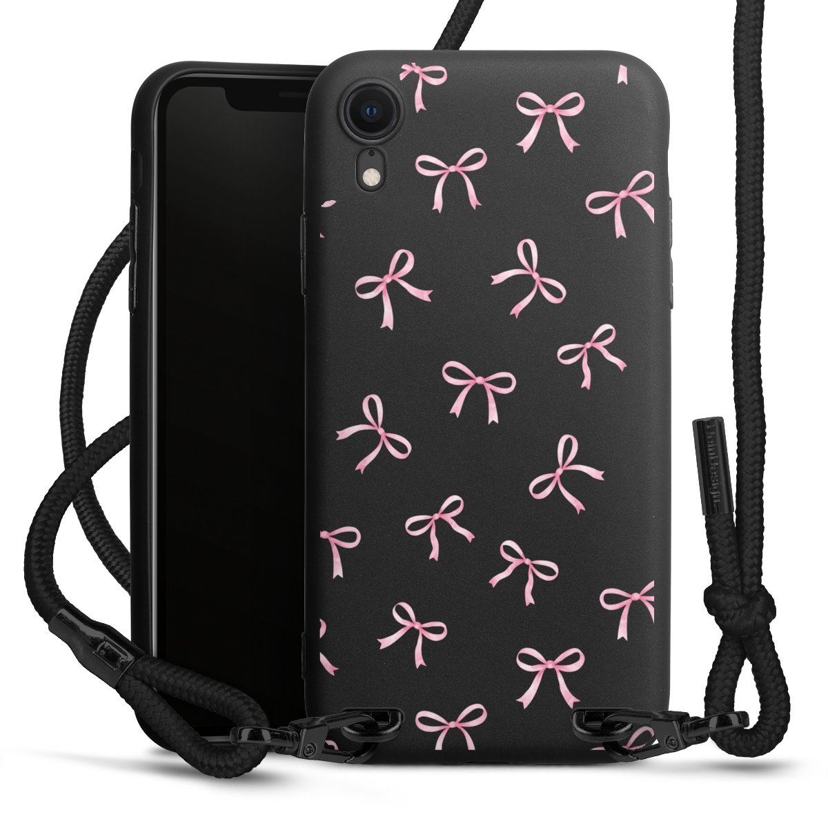 Pure Black: Phone case, fabric strap and metal details in stylish matt black.