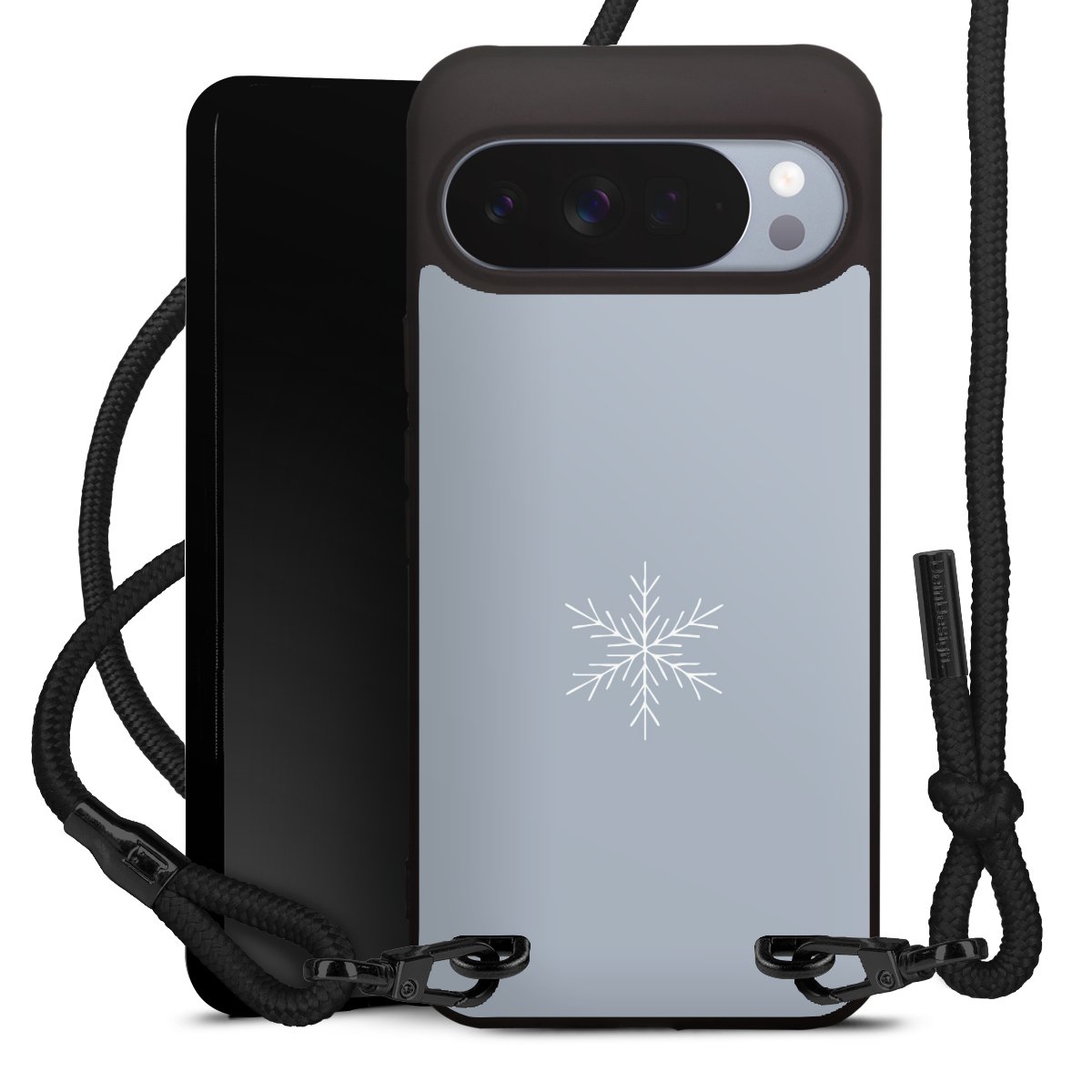 Pure Black: Phone case, fabric strap and metal details in stylish matt black.