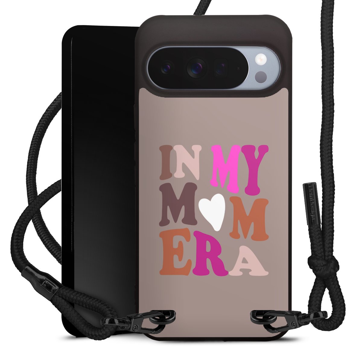 Pure Black: Phone case, fabric strap and metal details in stylish matt black.