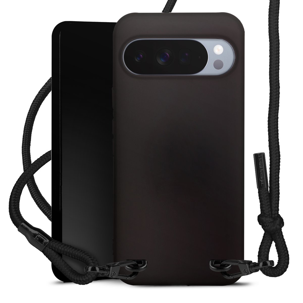 Pure Black: Phone case, fabric strap and metal details in stylish matt black.