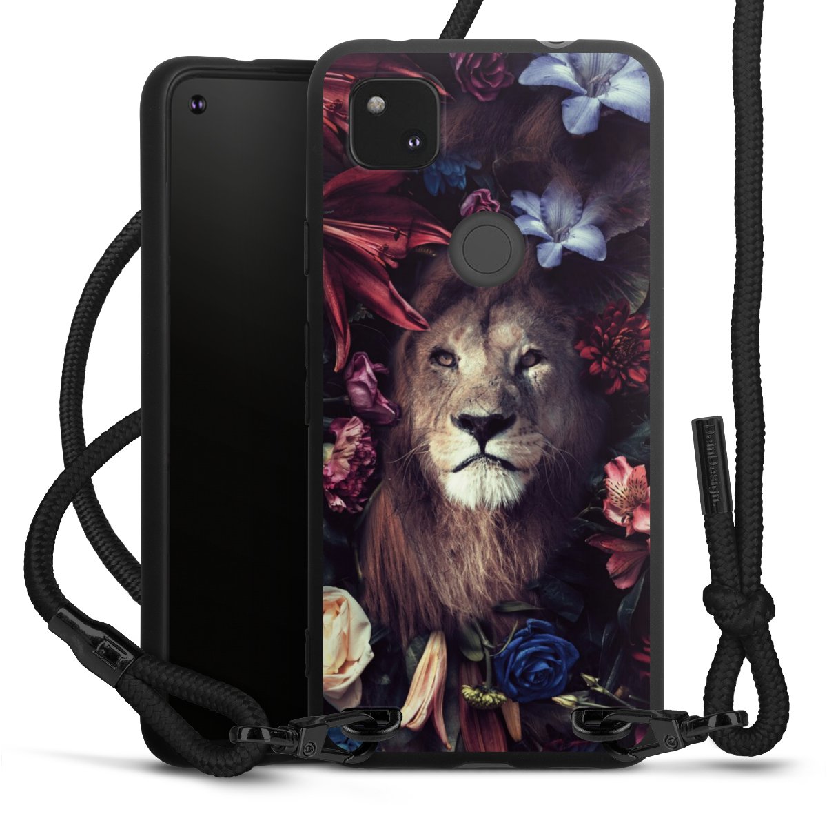 The matt black silicone case is made of flexible TPU (thermoplastic polyurethane) and offers robust protection. The durable, unbreakable material makes the cover flexible and dimensionally stable at the same time. The matte surface makes your design stand out more and is less susceptible to fingerprints and dirt. The stylish trend accessory fits comfortably in the hand and is perfectly complemented by the fabric (polyester) mobile phone strap. The braided fabric strap is approx. 1.70 metres long with a diameter of approx. 0.5 cm. Due to the special knotting technique, the length of the strap can be adjusted by simply pulling it, so that you can adapt it individually to your wishes. The practical case to wear around your neck is available with the fabric strap in black. As a little icing on the cake, we have provided the strap with a chic metal fastener in matt black. The strap is securely fastened to the case with loops made of high-quality genuine leather and press studs. The ends of the fabric strap are covered with metallic end caps and thus protected from fraying.