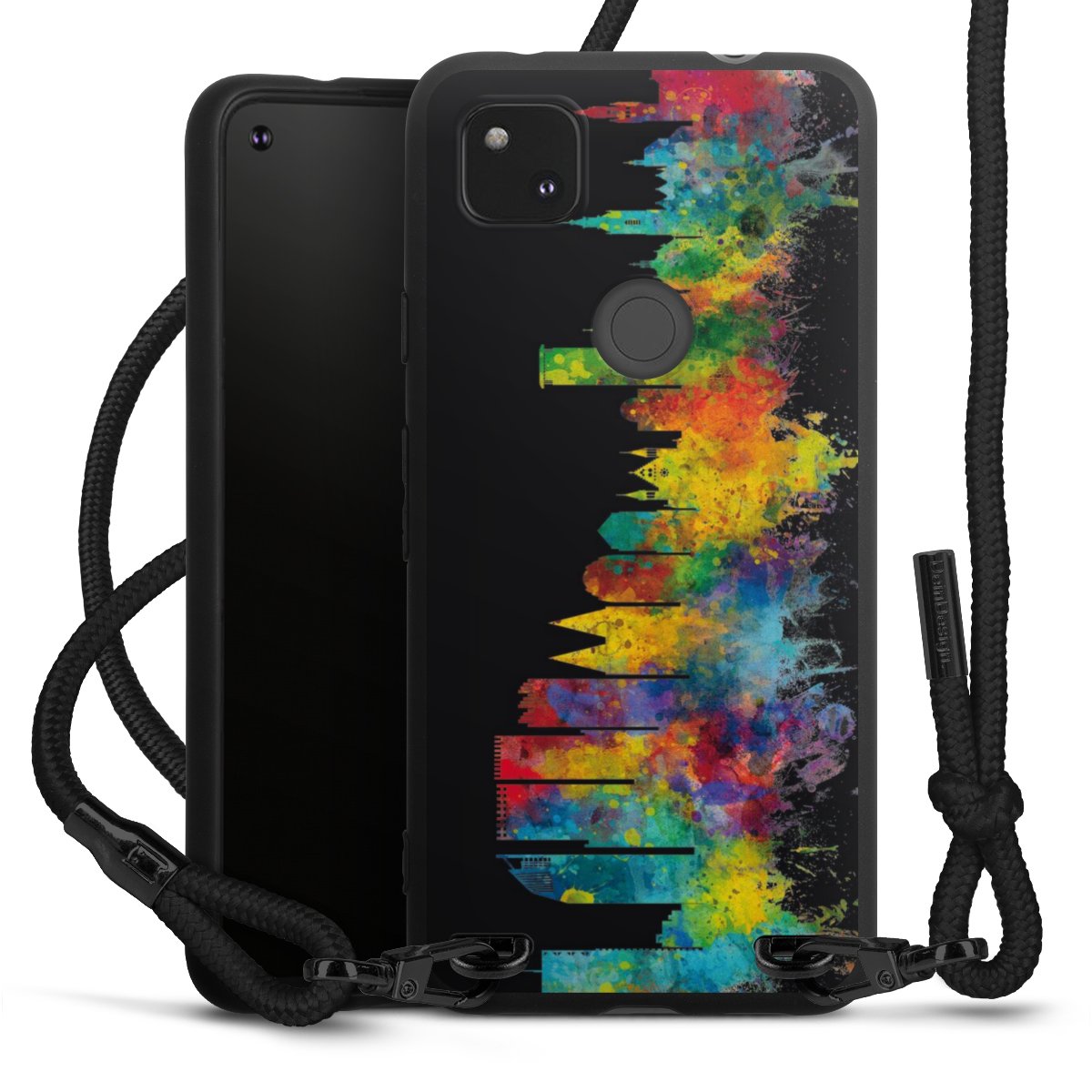 We use the solid direct print process for this phone case, which is why the print area only covers the back and the edge remains unprinted. The case to wear around your neck can be ordered unprinted, fully printed, or partially printed. For your design, either choose one of our exclusive shop motifs or get creative and create your own design, for example with photos and overlays. Design your own personal trend accessory and make an individual statement on the streets!