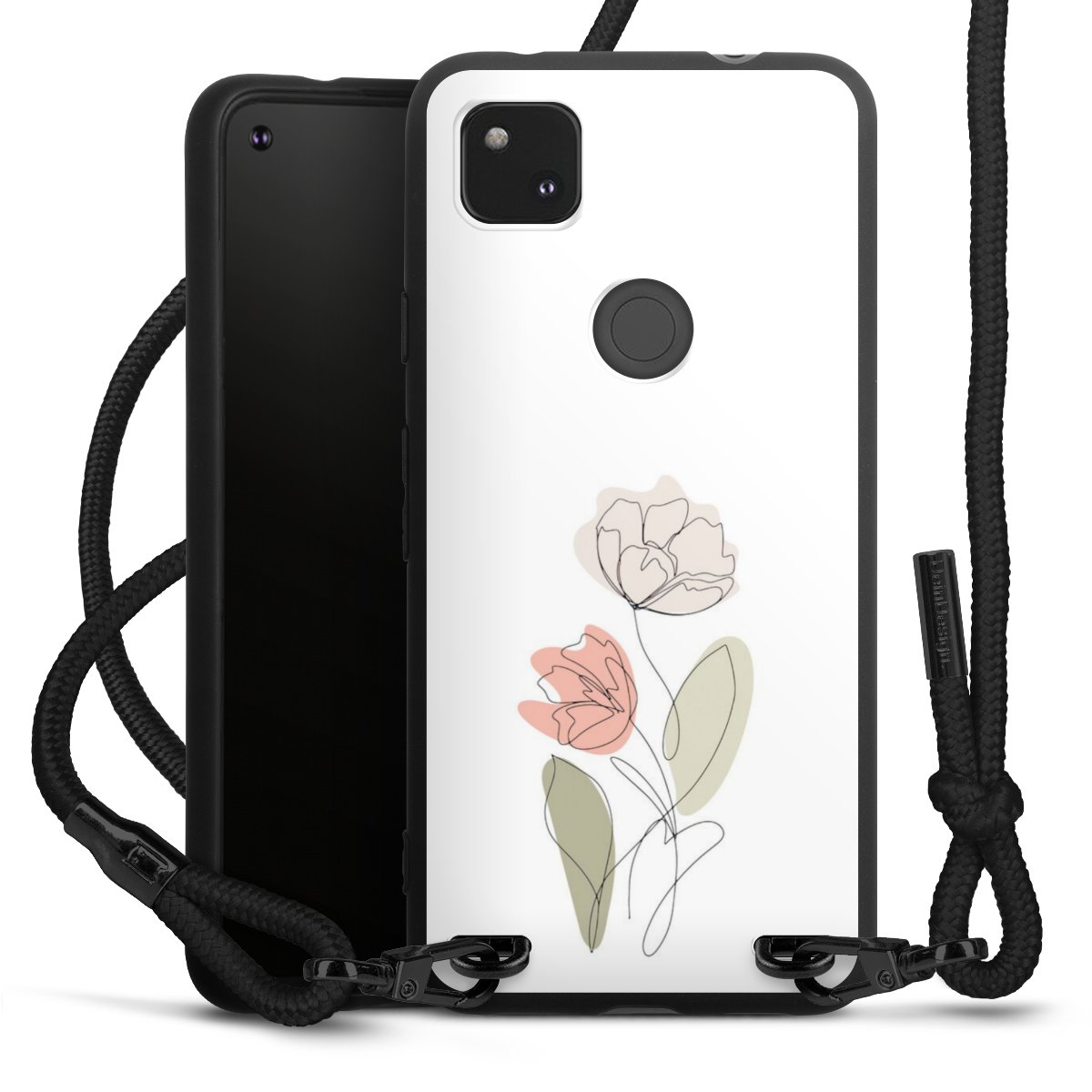 The matt black silicone case is made of flexible TPU (thermoplastic polyurethane) and offers robust protection. The durable, unbreakable material makes the cover flexible and dimensionally stable at the same time. The matte surface makes your design stand out more and is less susceptible to fingerprints and dirt. The stylish trend accessory fits comfortably in the hand and is perfectly complemented by the fabric (polyester) mobile phone strap. The braided fabric strap is approx. 1.70 metres long with a diameter of approx. 0.5 cm. Due to the special knotting technique, the length of the strap can be adjusted by simply pulling it, so that you can adapt it individually to your wishes. The practical case to wear around your neck is available with the fabric strap in black. As a little icing on the cake, we have provided the strap with a chic metal fastener in matt black. The strap is securely fastened to the case with loops made of high-quality genuine leather and press studs. The ends of the fabric strap are covered with metallic end caps and thus protected from fraying.
