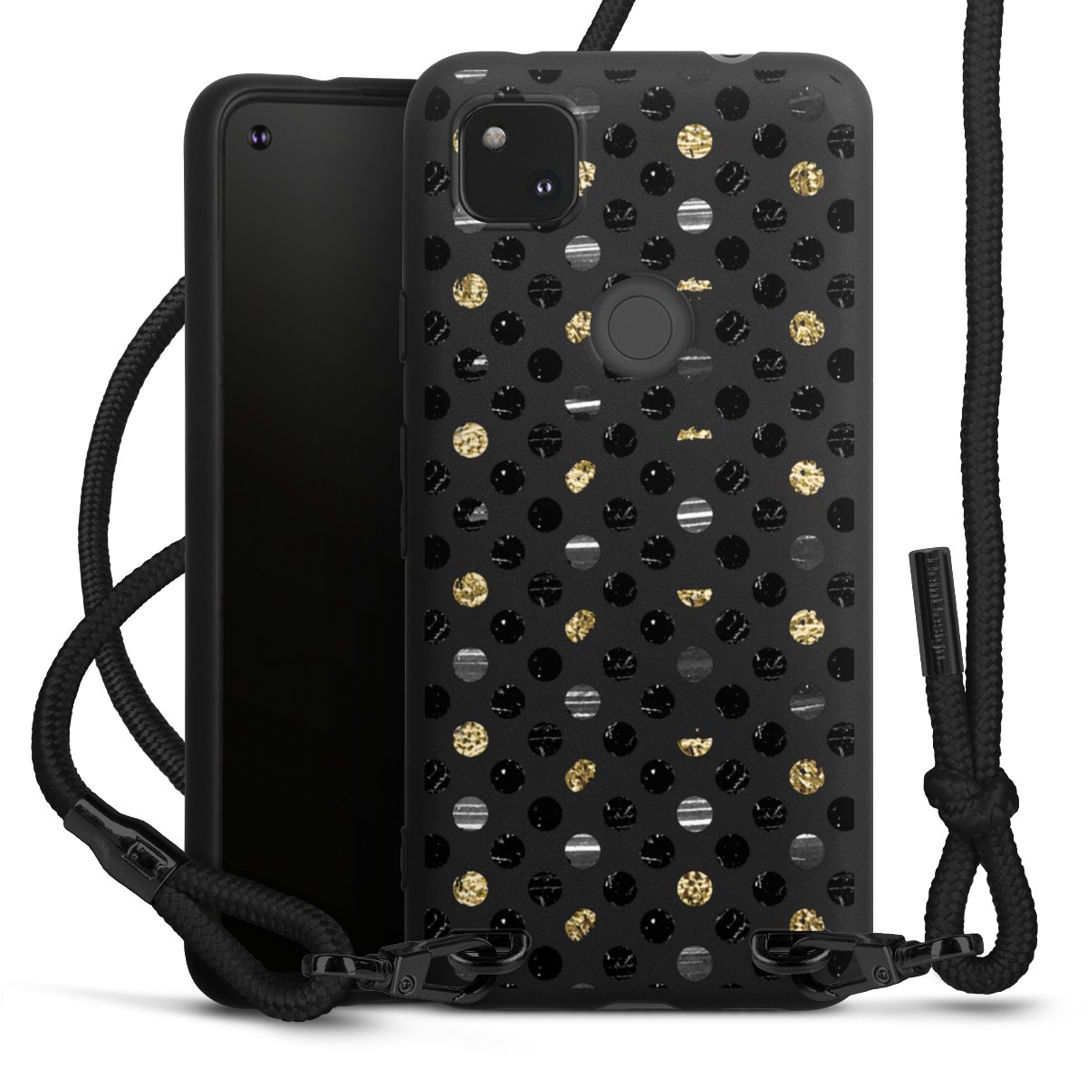 Pure Black: Phone case, fabric strap and metal details in stylish matt black.
