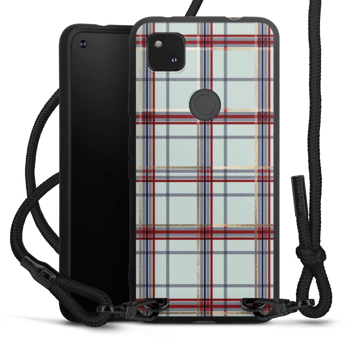 The matt black silicone case is made of flexible TPU (thermoplastic polyurethane) and offers robust protection. The durable, unbreakable material makes the cover flexible and dimensionally stable at the same time. The matte surface makes your design stand out more and is less susceptible to fingerprints and dirt. The stylish trend accessory fits comfortably in the hand and is perfectly complemented by the fabric (polyester) mobile phone strap. The braided fabric strap is approx. 1.70 metres long with a diameter of approx. 0.5 cm. Due to the special knotting technique, the length of the strap can be adjusted by simply pulling it, so that you can adapt it individually to your wishes. The practical case to wear around your neck is available with the fabric strap in black. As a little icing on the cake, we have provided the strap with a chic metal fastener in matt black. The strap is securely fastened to the case with loops made of high-quality genuine leather and press studs. The ends of the fabric strap are covered with metallic end caps and thus protected from fraying.