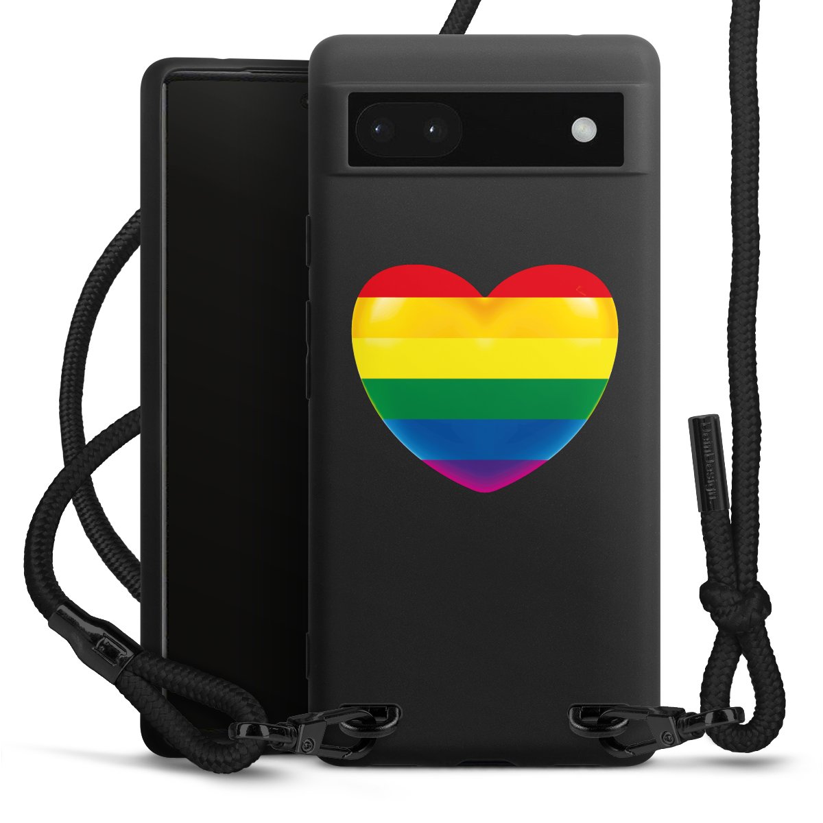 The matt black silicone case is made of flexible TPU (thermoplastic polyurethane) and offers robust protection. The durable, unbreakable material makes the cover flexible and dimensionally stable at the same time. The matte surface makes your design stand out more and is less susceptible to fingerprints and dirt. The stylish trend accessory fits comfortably in the hand and is perfectly complemented by the fabric (polyester) mobile phone strap. The braided fabric strap is approx. 1.70 metres long with a diameter of approx. 0.5 cm. Due to the special knotting technique, the length of the strap can be adjusted by simply pulling it, so that you can adapt it individually to your wishes. The practical case to wear around your neck is available with the fabric strap in black. As a little icing on the cake, we have provided the strap with a chic metal fastener in matt black. The strap is securely fastened to the case with loops made of high-quality genuine leather and press studs. The ends of the fabric strap are covered with metallic end caps and thus protected from fraying.