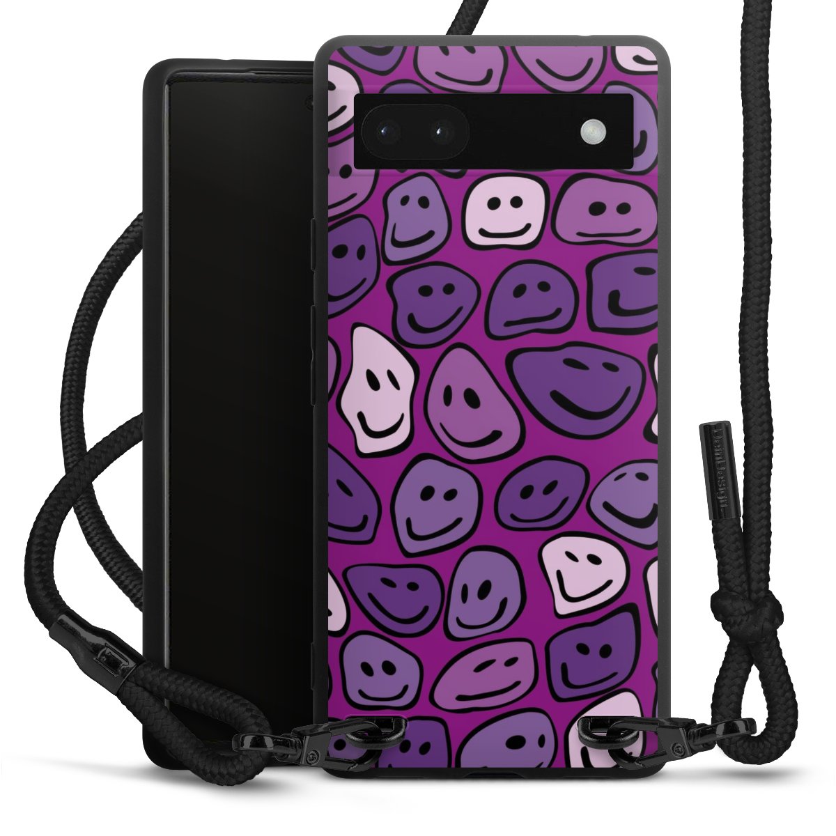 We use the solid direct print process for this phone case, which is why the print area only covers the back and the edge remains unprinted. The case to wear around your neck can be ordered unprinted, fully printed, or partially printed. For your design, either choose one of our exclusive shop motifs or get creative and create your own design, for example with photos and overlays. Design your own personal trend accessory and make an individual statement on the streets!