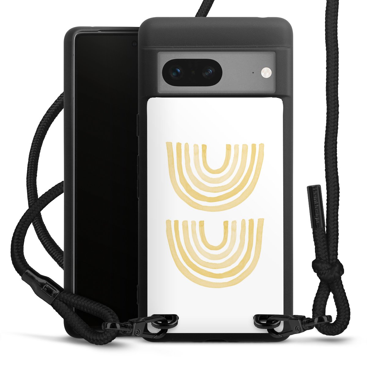 We use the solid direct print process for this phone case, which is why the print area only covers the back and the edge remains unprinted. The case to wear around your neck can be ordered unprinted, fully printed, or partially printed. For your design, either choose one of our exclusive shop motifs or get creative and create your own design, for example with photos and overlays. Design your own personal trend accessory and make an individual statement on the streets!