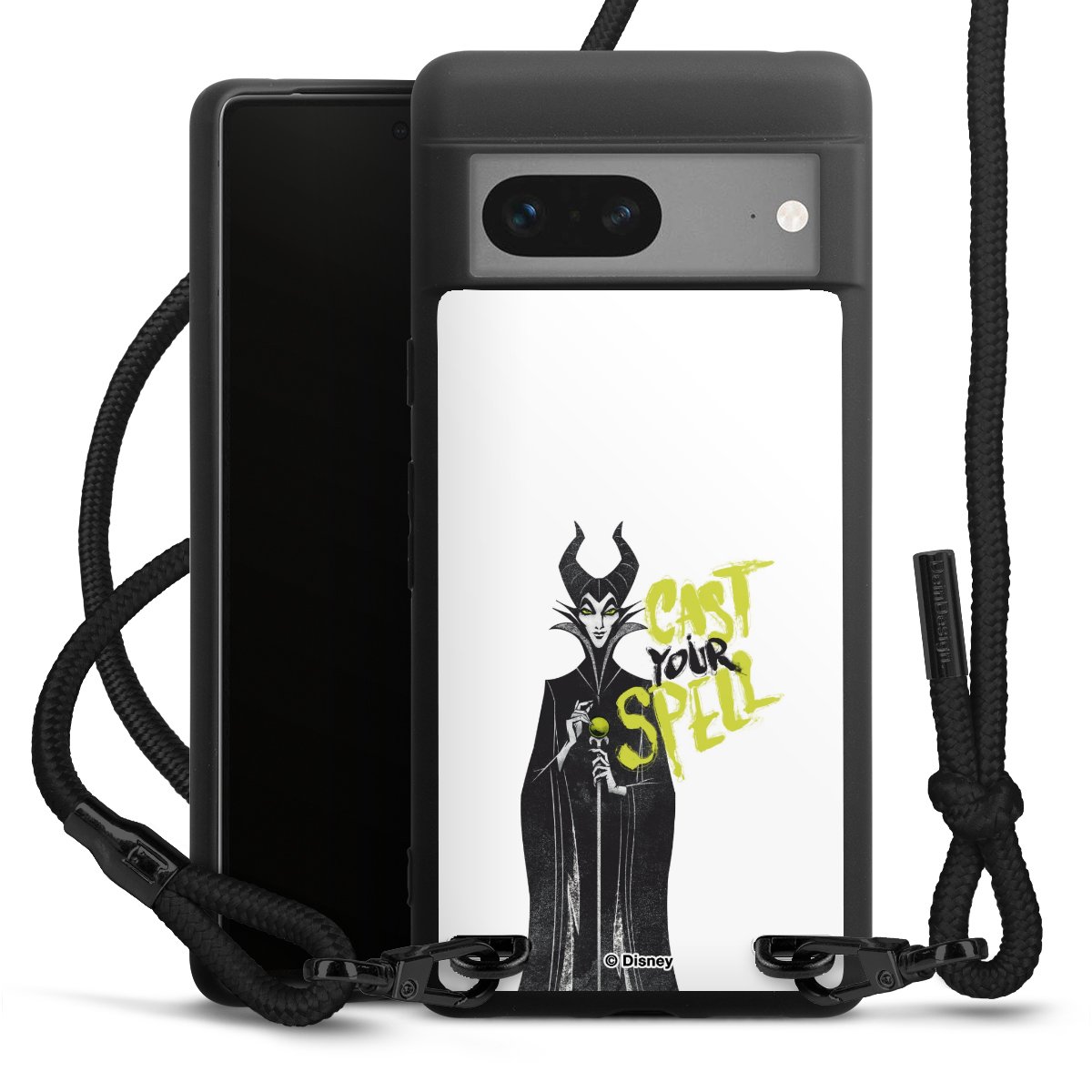 The matt black silicone case is made of flexible TPU (thermoplastic polyurethane) and offers robust protection. The durable, unbreakable material makes the cover flexible and dimensionally stable at the same time. The matte surface makes your design stand out more and is less susceptible to fingerprints and dirt. The stylish trend accessory fits comfortably in the hand and is perfectly complemented by the fabric (polyester) mobile phone strap. The braided fabric strap is approx. 1.70 metres long with a diameter of approx. 0.5 cm. Due to the special knotting technique, the length of the strap can be adjusted by simply pulling it, so that you can adapt it individually to your wishes. The practical case to wear around your neck is available with the fabric strap in black. As a little icing on the cake, we have provided the strap with a chic metal fastener in matt black. The strap is securely fastened to the case with loops made of high-quality genuine leather and press studs. The ends of the fabric strap are covered with metallic end caps and thus protected from fraying.