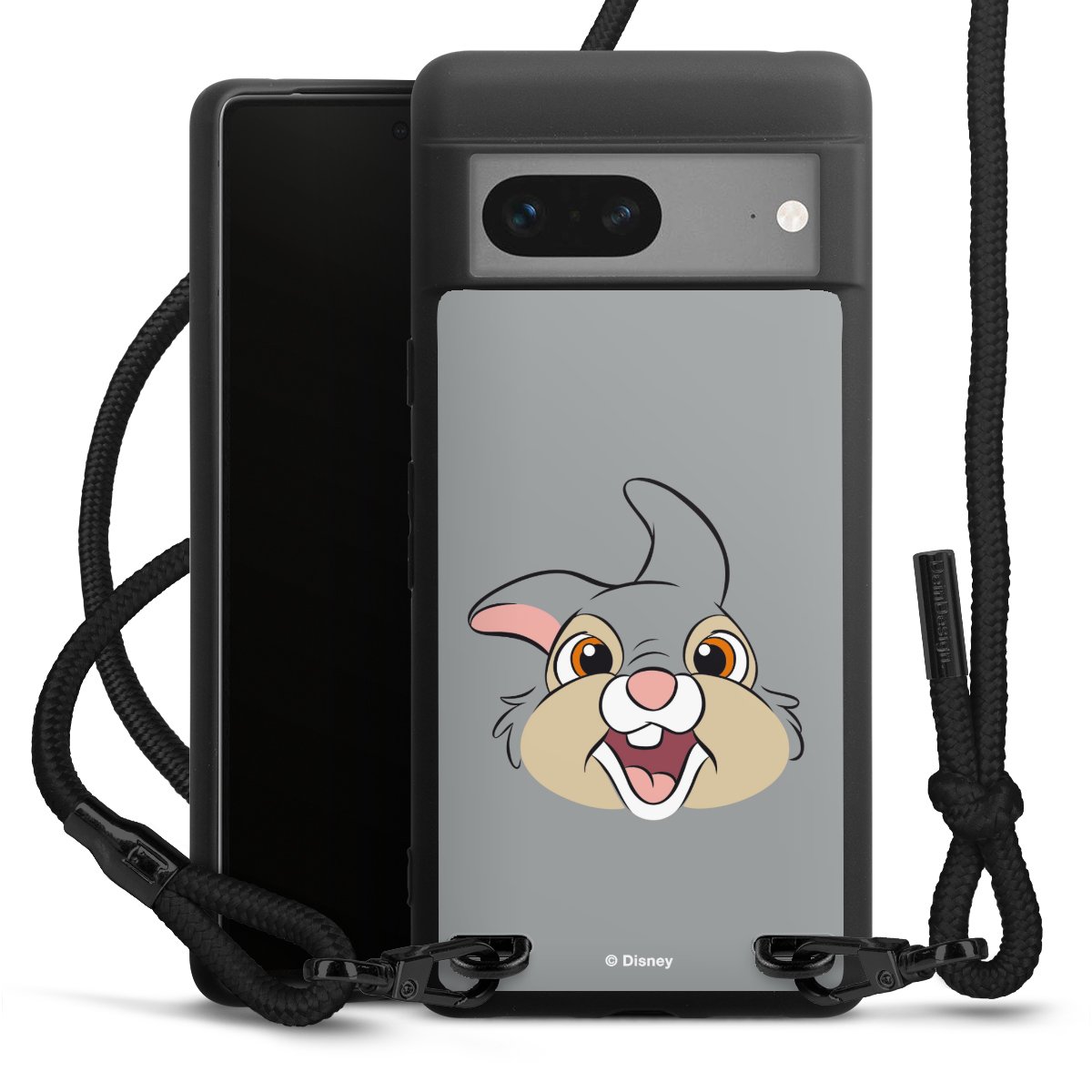 The matt black silicone case is made of flexible TPU (thermoplastic polyurethane) and offers robust protection. The durable, unbreakable material makes the cover flexible and dimensionally stable at the same time. The matte surface makes your design stand out more and is less susceptible to fingerprints and dirt. The stylish trend accessory fits comfortably in the hand and is perfectly complemented by the fabric (polyester) mobile phone strap. The braided fabric strap is approx. 1.70 metres long with a diameter of approx. 0.5 cm. Due to the special knotting technique, the length of the strap can be adjusted by simply pulling it, so that you can adapt it individually to your wishes. The practical case to wear around your neck is available with the fabric strap in black. As a little icing on the cake, we have provided the strap with a chic metal fastener in matt black. The strap is securely fastened to the case with loops made of high-quality genuine leather and press studs. The ends of the fabric strap are covered with metallic end caps and thus protected from fraying.