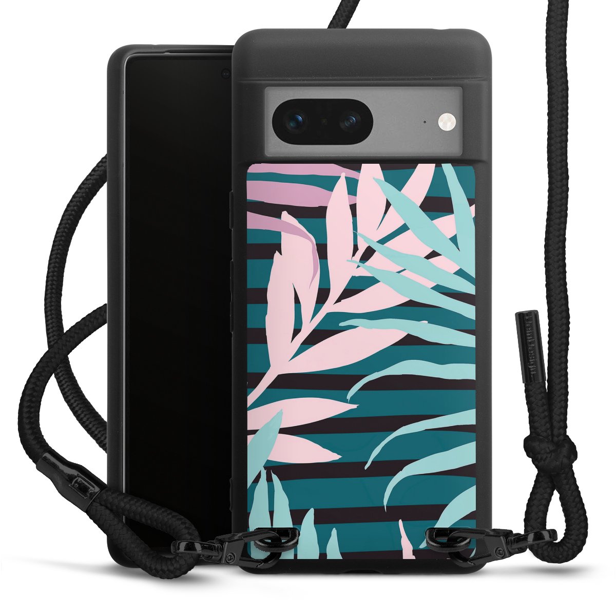 We use the solid direct print process for this phone case, which is why the print area only covers the back and the edge remains unprinted. The case to wear around your neck can be ordered unprinted, fully printed, or partially printed. For your design, either choose one of our exclusive shop motifs or get creative and create your own design, for example with photos and overlays. Design your own personal trend accessory and make an individual statement on the streets!