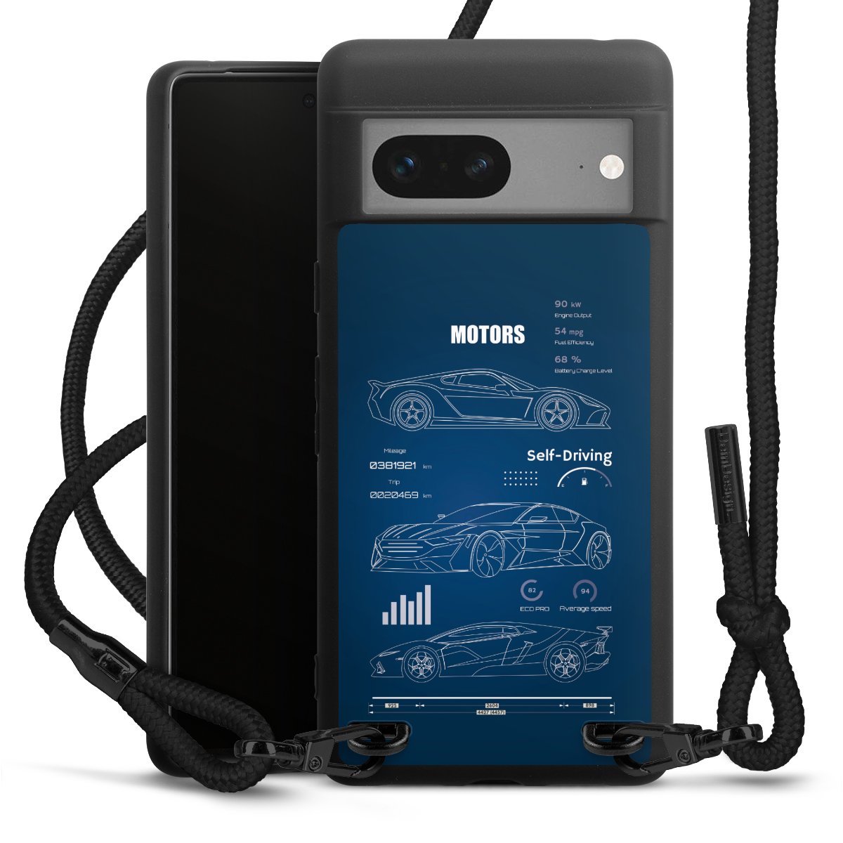 We use the solid direct print process for this phone case, which is why the print area only covers the back and the edge remains unprinted. The case to wear around your neck can be ordered unprinted, fully printed, or partially printed. For your design, either choose one of our exclusive shop motifs or get creative and create your own design, for example with photos and overlays. Design your own personal trend accessory and make an individual statement on the streets!