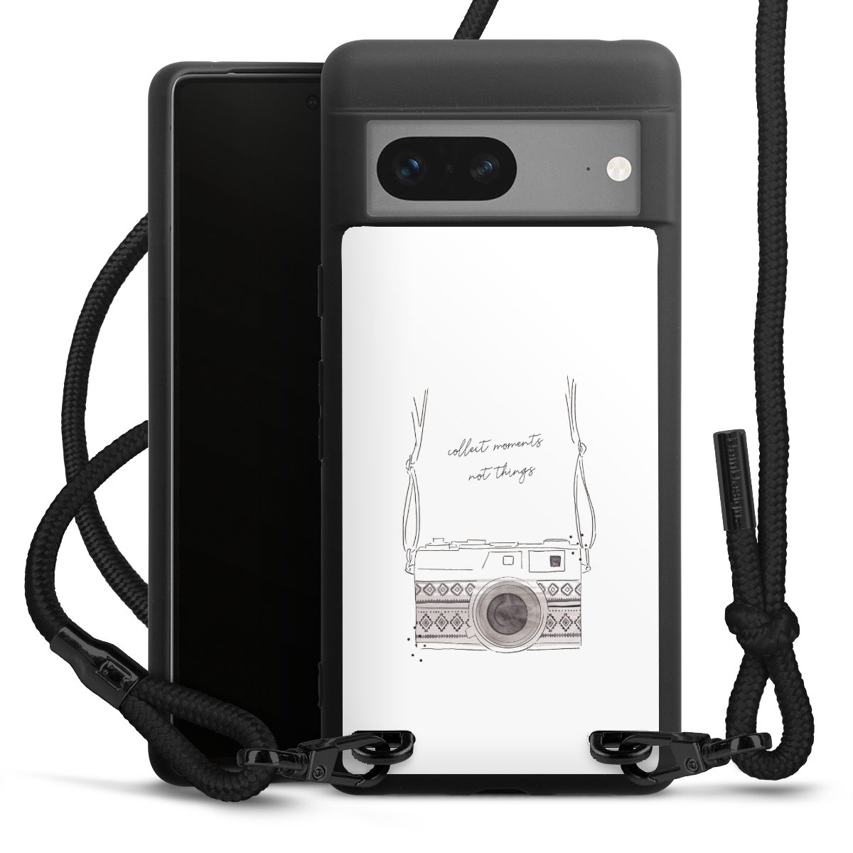 We use the solid direct print process for this phone case, which is why the print area only covers the back and the edge remains unprinted. The case to wear around your neck can be ordered unprinted, fully printed, or partially printed. For your design, either choose one of our exclusive shop motifs or get creative and create your own design, for example with photos and overlays. Design your own personal trend accessory and make an individual statement on the streets!