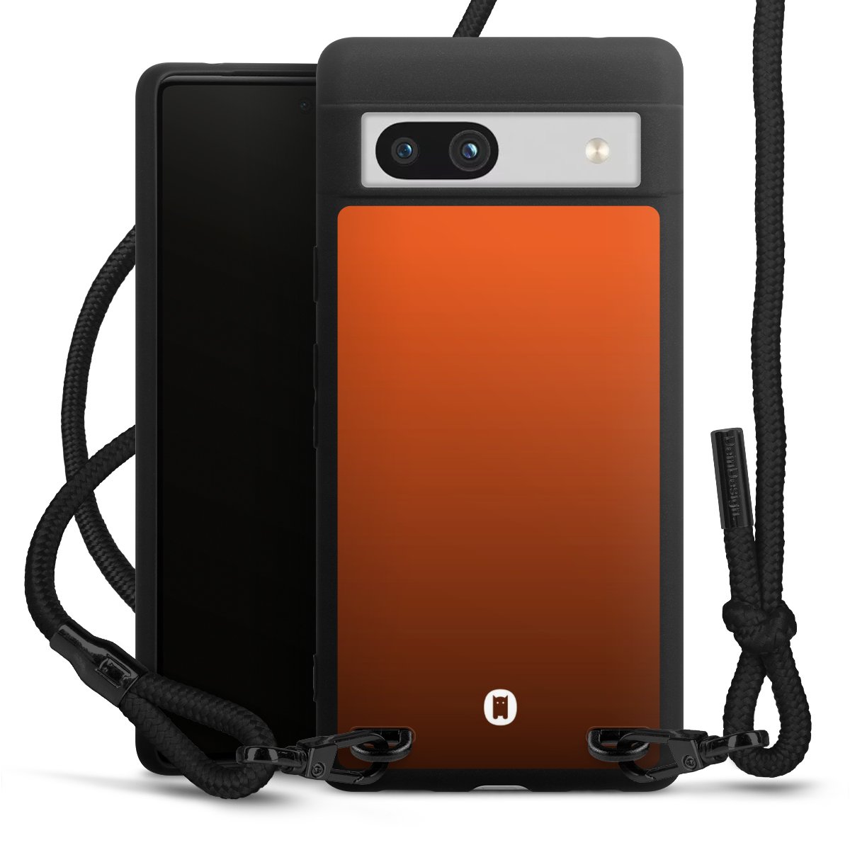The matt black silicone case is made of flexible TPU (thermoplastic polyurethane) and offers robust protection. The durable, unbreakable material makes the cover flexible and dimensionally stable at the same time. The matte surface makes your design stand out more and is less susceptible to fingerprints and dirt. The stylish trend accessory fits comfortably in the hand and is perfectly complemented by the fabric (polyester) mobile phone strap. The braided fabric strap is approx. 1.70 metres long with a diameter of approx. 0.5 cm. Due to the special knotting technique, the length of the strap can be adjusted by simply pulling it, so that you can adapt it individually to your wishes. The practical case to wear around your neck is available with the fabric strap in black. As a little icing on the cake, we have provided the strap with a chic metal fastener in matt black. The strap is securely fastened to the case with loops made of high-quality genuine leather and press studs. The ends of the fabric strap are covered with metallic end caps and thus protected from fraying.