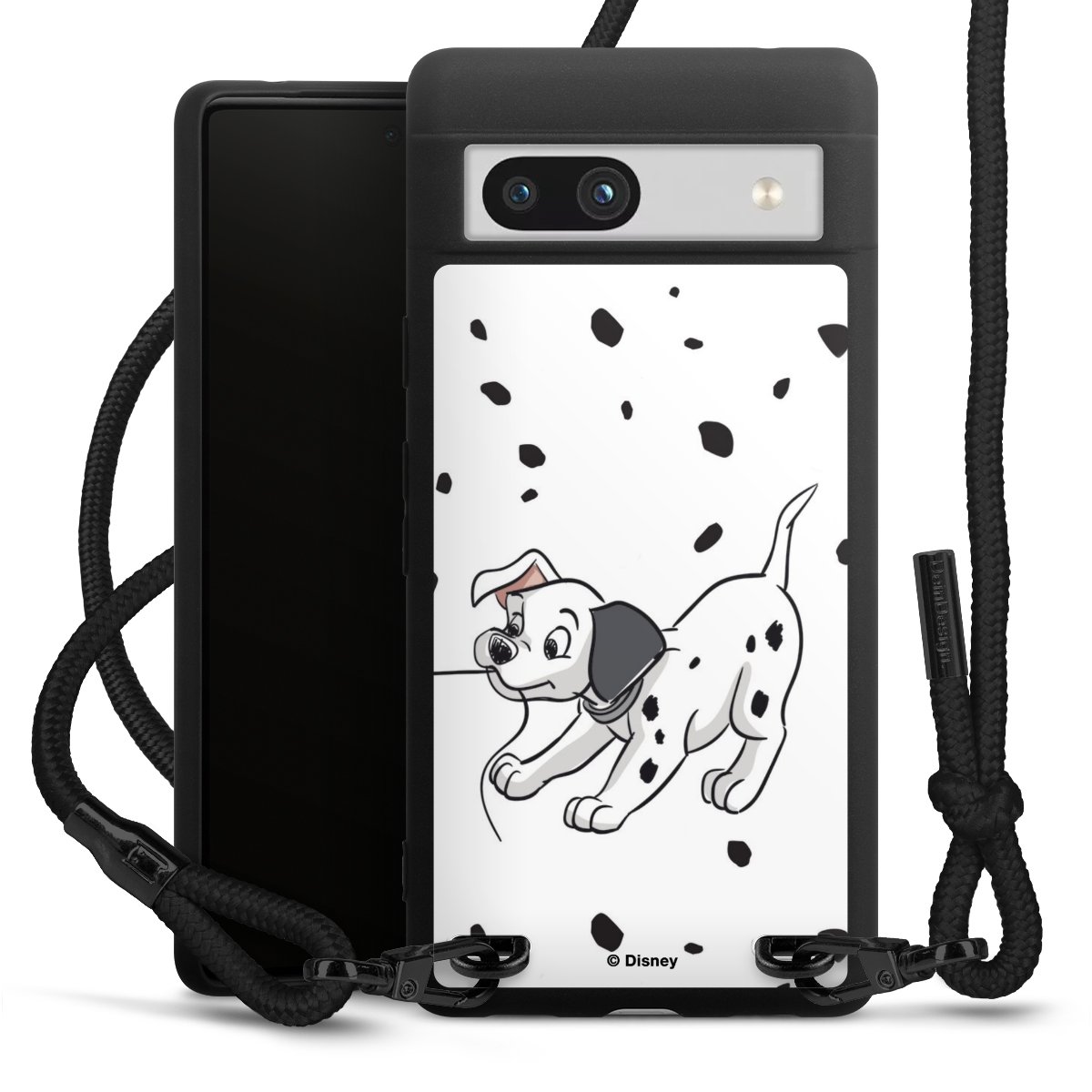 The matt black silicone case is made of flexible TPU (thermoplastic polyurethane) and offers robust protection. The durable, unbreakable material makes the cover flexible and dimensionally stable at the same time. The matte surface makes your design stand out more and is less susceptible to fingerprints and dirt. The stylish trend accessory fits comfortably in the hand and is perfectly complemented by the fabric (polyester) mobile phone strap. The braided fabric strap is approx. 1.70 metres long with a diameter of approx. 0.5 cm. Due to the special knotting technique, the length of the strap can be adjusted by simply pulling it, so that you can adapt it individually to your wishes. The practical case to wear around your neck is available with the fabric strap in black. As a little icing on the cake, we have provided the strap with a chic metal fastener in matt black. The strap is securely fastened to the case with loops made of high-quality genuine leather and press studs. The ends of the fabric strap are covered with metallic end caps and thus protected from fraying.