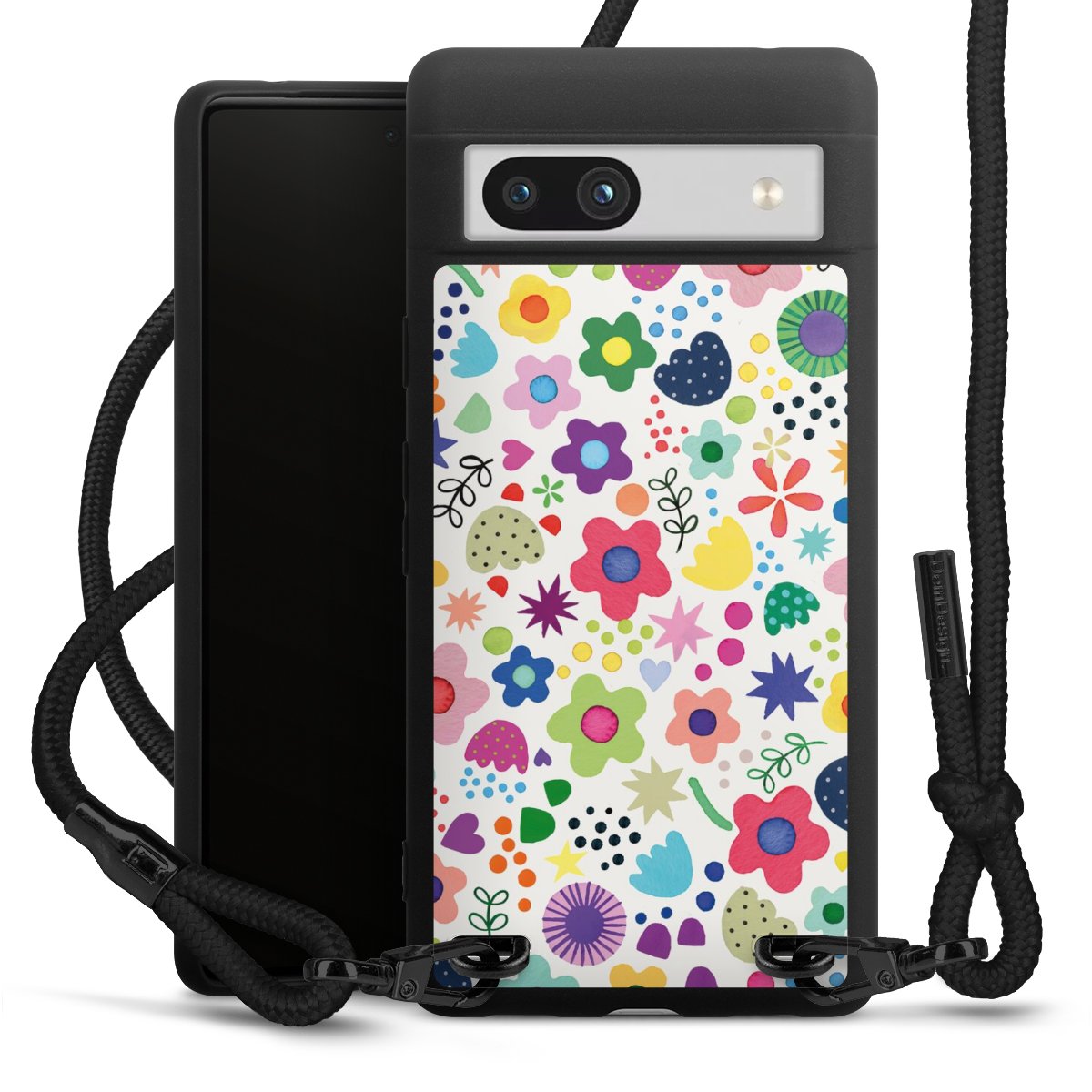 We use the solid direct print process for this phone case, which is why the print area only covers the back and the edge remains unprinted. The case to wear around your neck can be ordered unprinted, fully printed, or partially printed. For your design, either choose one of our exclusive shop motifs or get creative and create your own design, for example with photos and overlays. Design your own personal trend accessory and make an individual statement on the streets!