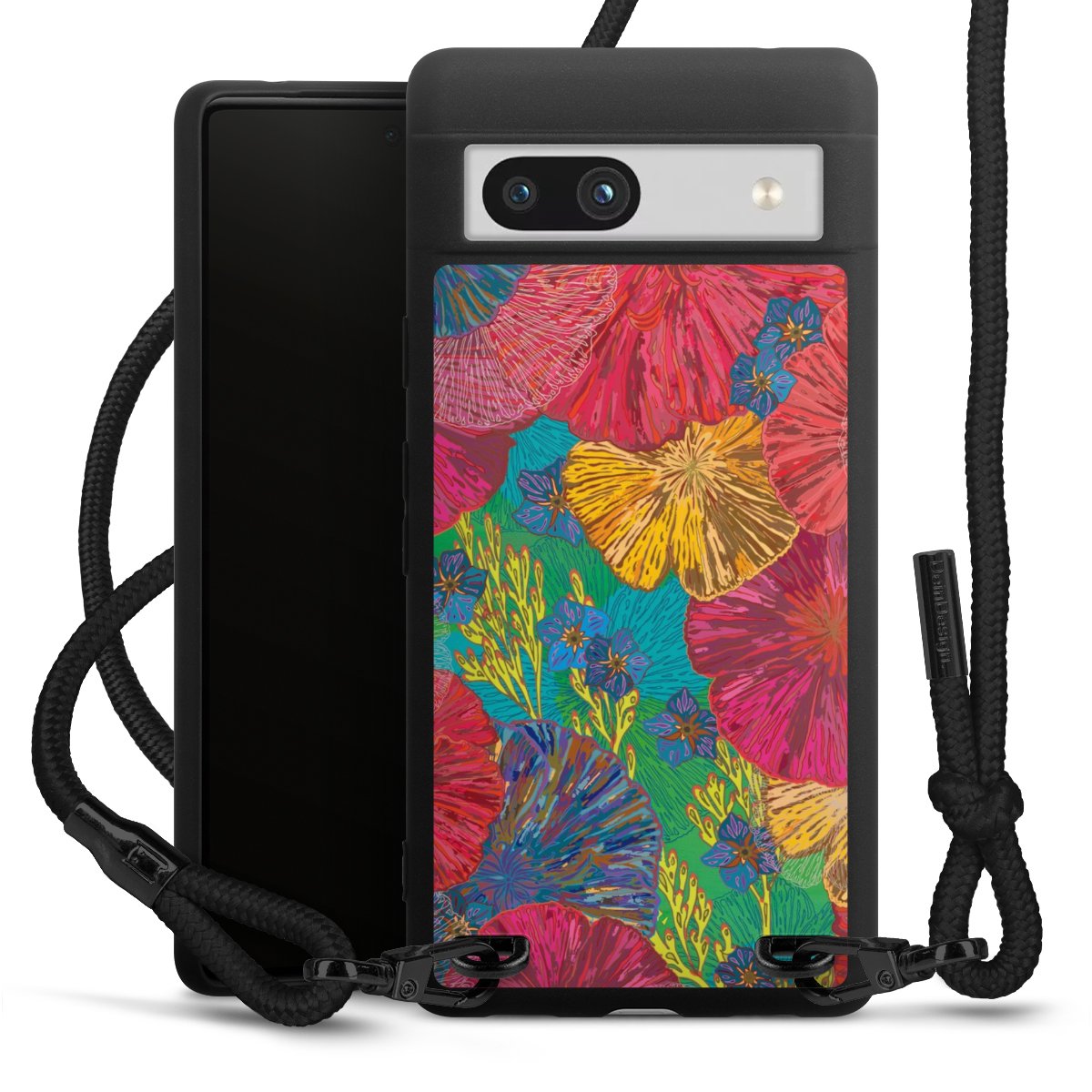We use the solid direct print process for this phone case, which is why the print area only covers the back and the edge remains unprinted. The case to wear around your neck can be ordered unprinted, fully printed, or partially printed. For your design, either choose one of our exclusive shop motifs or get creative and create your own design, for example with photos and overlays. Design your own personal trend accessory and make an individual statement on the streets!