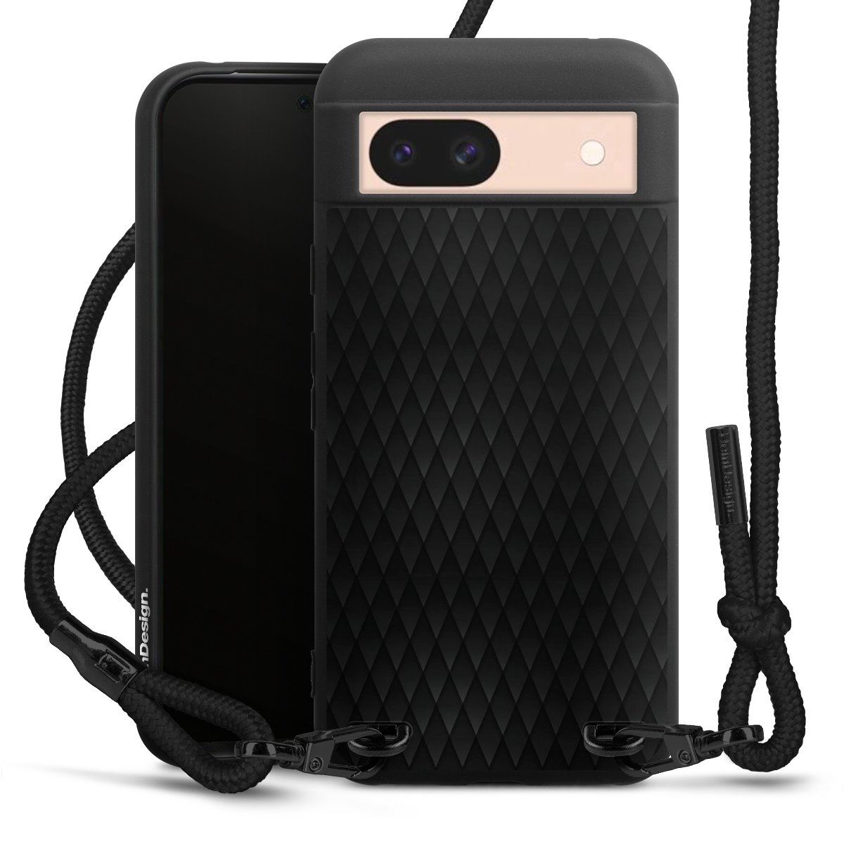 Pure Black: Phone case, fabric strap and metal details in stylish matt black.
