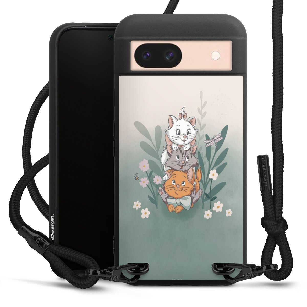 The matt black silicone case is made of flexible TPU (thermoplastic polyurethane) and offers robust protection. The durable, unbreakable material makes the cover flexible and dimensionally stable at the same time. The matte surface makes your design stand out more and is less susceptible to fingerprints and dirt. The stylish trend accessory fits comfortably in the hand and is perfectly complemented by the fabric (polyester) mobile phone strap. The braided fabric strap is approx. 1.70 metres long with a diameter of approx. 0.5 cm. Due to the special knotting technique, the length of the strap can be adjusted by simply pulling it, so that you can adapt it individually to your wishes. The practical case to wear around your neck is available with the fabric strap in black. As a little icing on the cake, we have provided the strap with a chic metal fastener in matt black. The strap is securely fastened to the case with loops made of high-quality genuine leather and press studs. The ends of the fabric strap are covered with metallic end caps and thus protected from fraying.