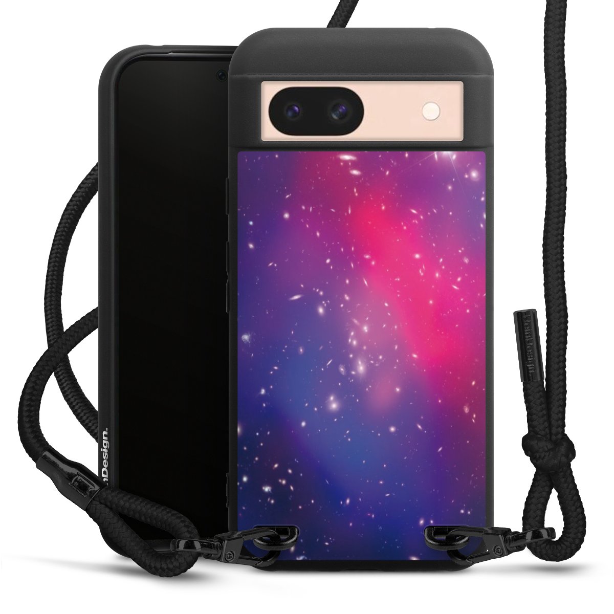 We use the solid direct print process for this phone case, which is why the print area only covers the back and the edge remains unprinted. The case to wear around your neck can be ordered unprinted, fully printed, or partially printed. For your design, either choose one of our exclusive shop motifs or get creative and create your own design, for example with photos and overlays. Design your own personal trend accessory and make an individual statement on the streets!