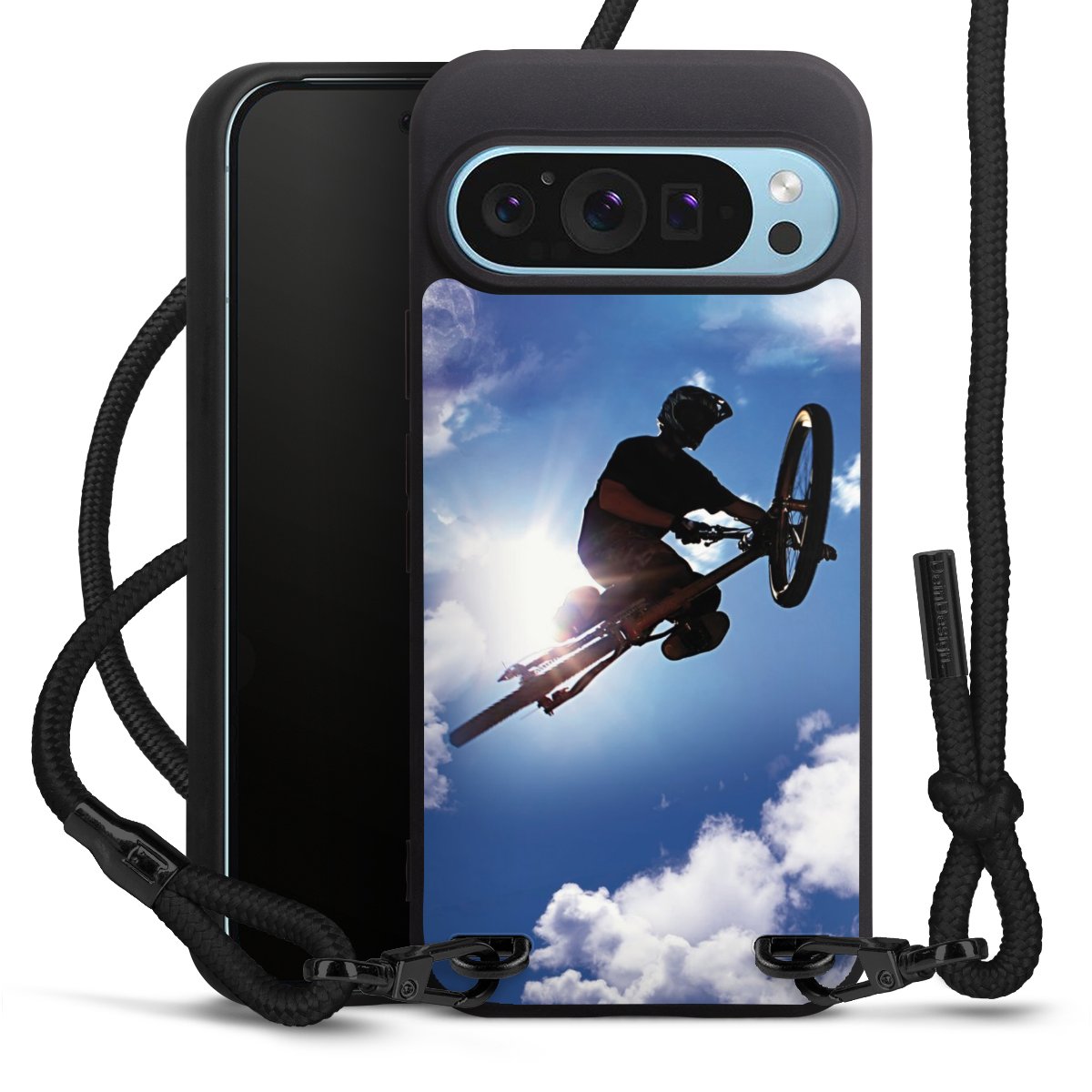 We use the solid direct print process for this phone case, which is why the print area only covers the back and the edge remains unprinted. The case to wear around your neck can be ordered unprinted, fully printed, or partially printed. For your design, either choose one of our exclusive shop motifs or get creative and create your own design, for example with photos and overlays. Design your own personal trend accessory and make an individual statement on the streets!