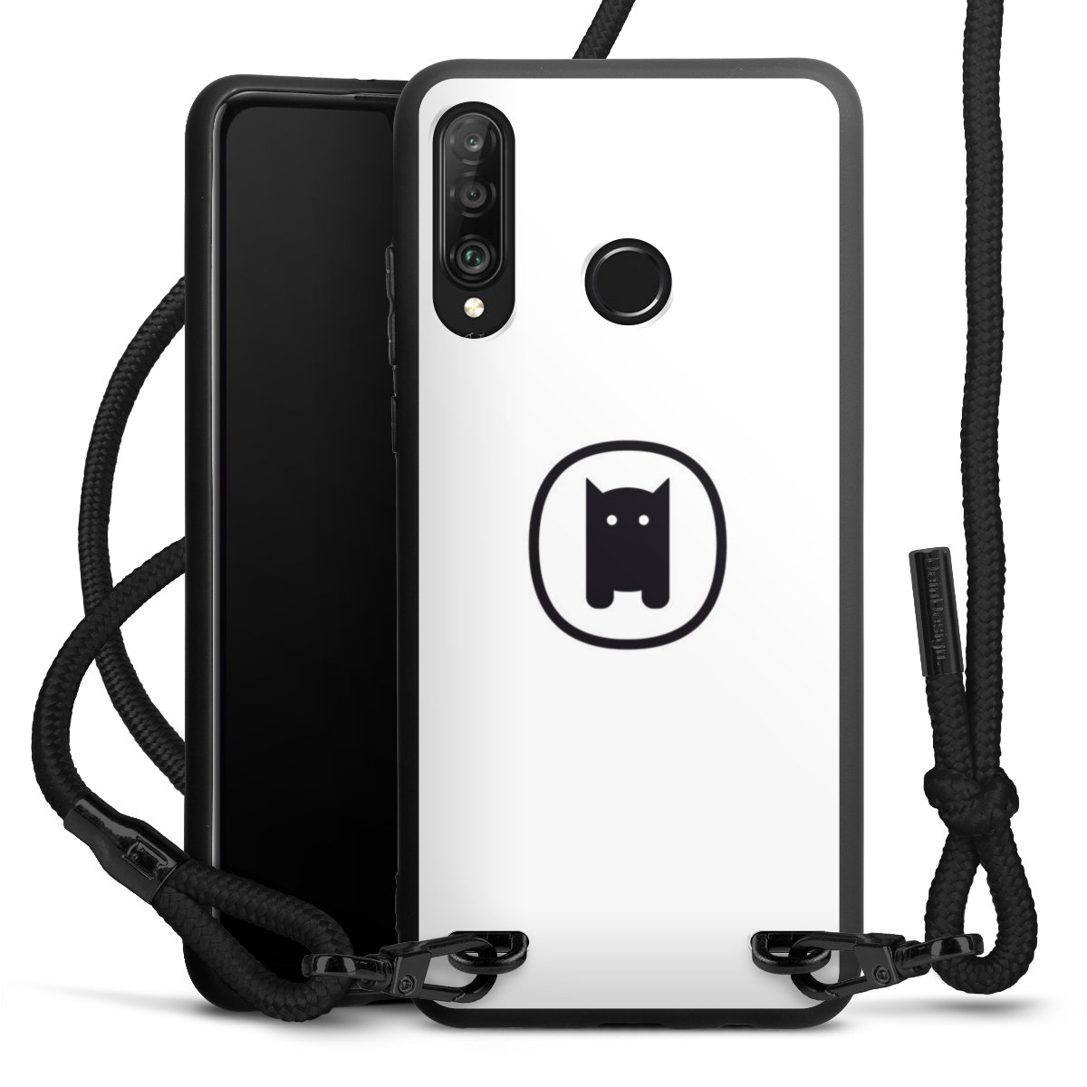 The matt black silicone case is made of flexible TPU (thermoplastic polyurethane) and offers robust protection. The durable, unbreakable material makes the cover flexible and dimensionally stable at the same time. The matte surface makes your design stand out more and is less susceptible to fingerprints and dirt. The stylish trend accessory fits comfortably in the hand and is perfectly complemented by the fabric (polyester) mobile phone strap. The braided fabric strap is approx. 1.70 metres long with a diameter of approx. 0.5 cm. Due to the special knotting technique, the length of the strap can be adjusted by simply pulling it, so that you can adapt it individually to your wishes. The practical case to wear around your neck is available with the fabric strap in black. As a little icing on the cake, we have provided the strap with a chic metal fastener in matt black. The strap is securely fastened to the case with loops made of high-quality genuine leather and press studs. The ends of the fabric strap are covered with metallic end caps and thus protected from fraying.